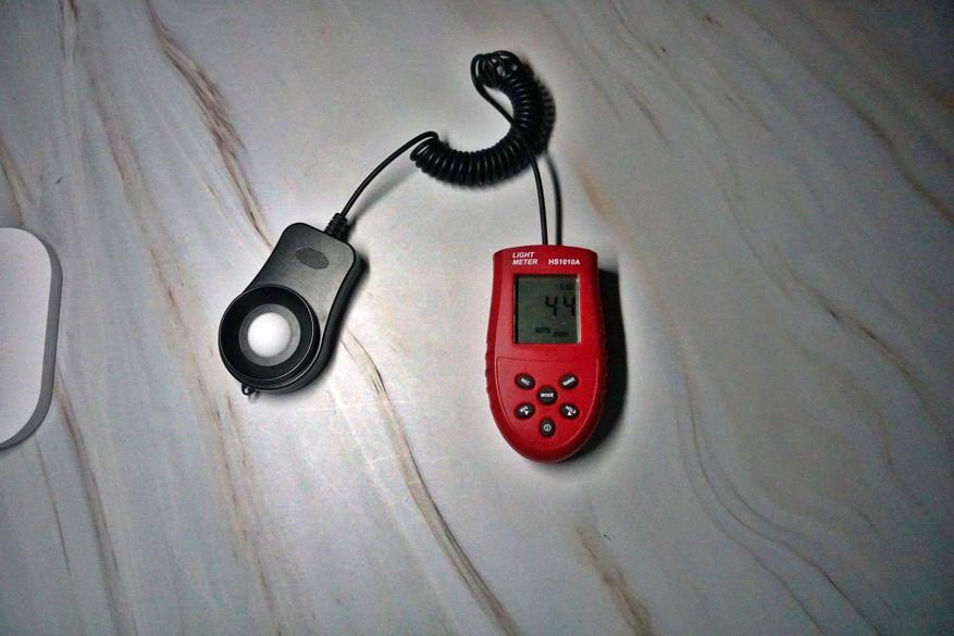 Проверял люкосметром освещенность при минимальной и максимальной яркости и разных цветовых режимах света. Минимальное значение 41Lux (не путать с Люменами)..