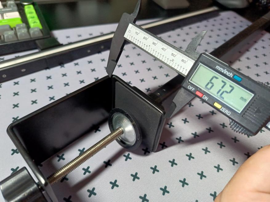 Длина светильника составляет 80 см, что обеспечивает равномерное освещение большой рабочей поверхности. Струбцина оснащена резиновым покрытием и позволяет закрепить лампу на краю столешницы, не повреждая поверхность. Максимальная толщина столешницы 97 мм.