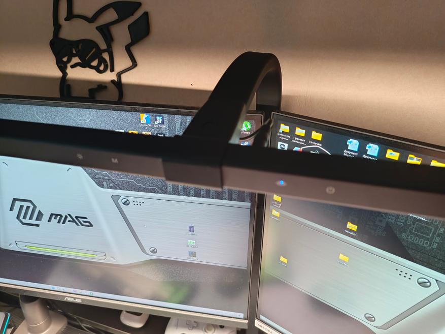 Слева фотография обычной лампы, а справа DUPI PHX004. Видно, что на мониторе есть огромные блики от лампы, а следовательно, они мешают работе, и приходится выставлять лампу таким образом, чтобы убрать блики. Также нужно сидеть в кресле относительно выставленной лампы, чтобы не было бликов. Если отвернуть свечение лампы в сторону, вы избавитесь от бликов, но тогда потеряете яркость в рабочей зоне. С обозреваемой моделью такой проблемы нет. Ничего вставлять не надо, и можно сидеть так, как вам удобно.