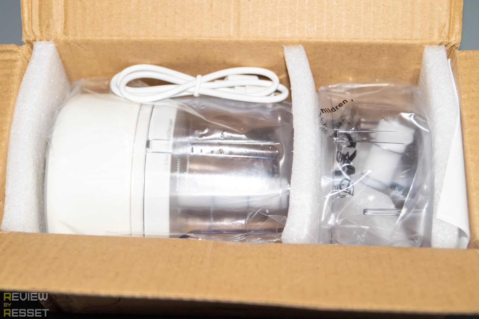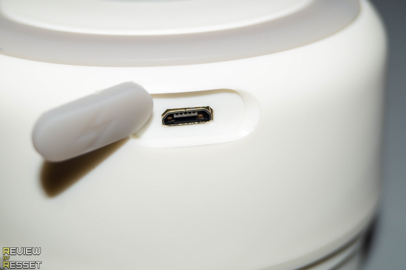 Из элементов управления имеется только кнопка пуска в верхней части корпуса, сбоку силиконовой заглушкой прикрыт разъем microUSB для зарядки. Чаши не фиксируются, но чтобы пользователь не навредил себе, в каждой установлен небольшой магнит
