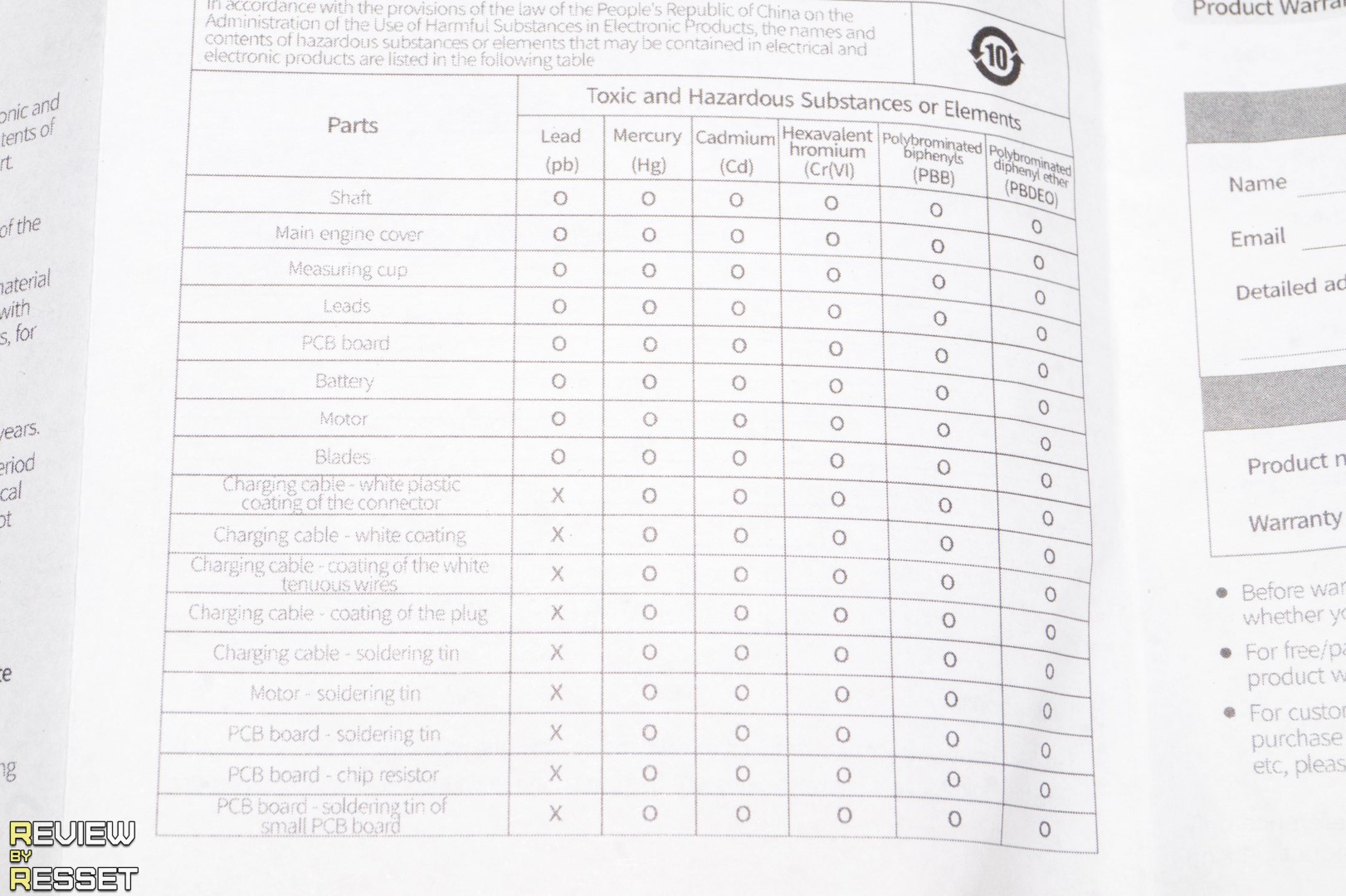 Во второй перечислен состав всех комплектующих и содержание в них опасных для здоровья соединений