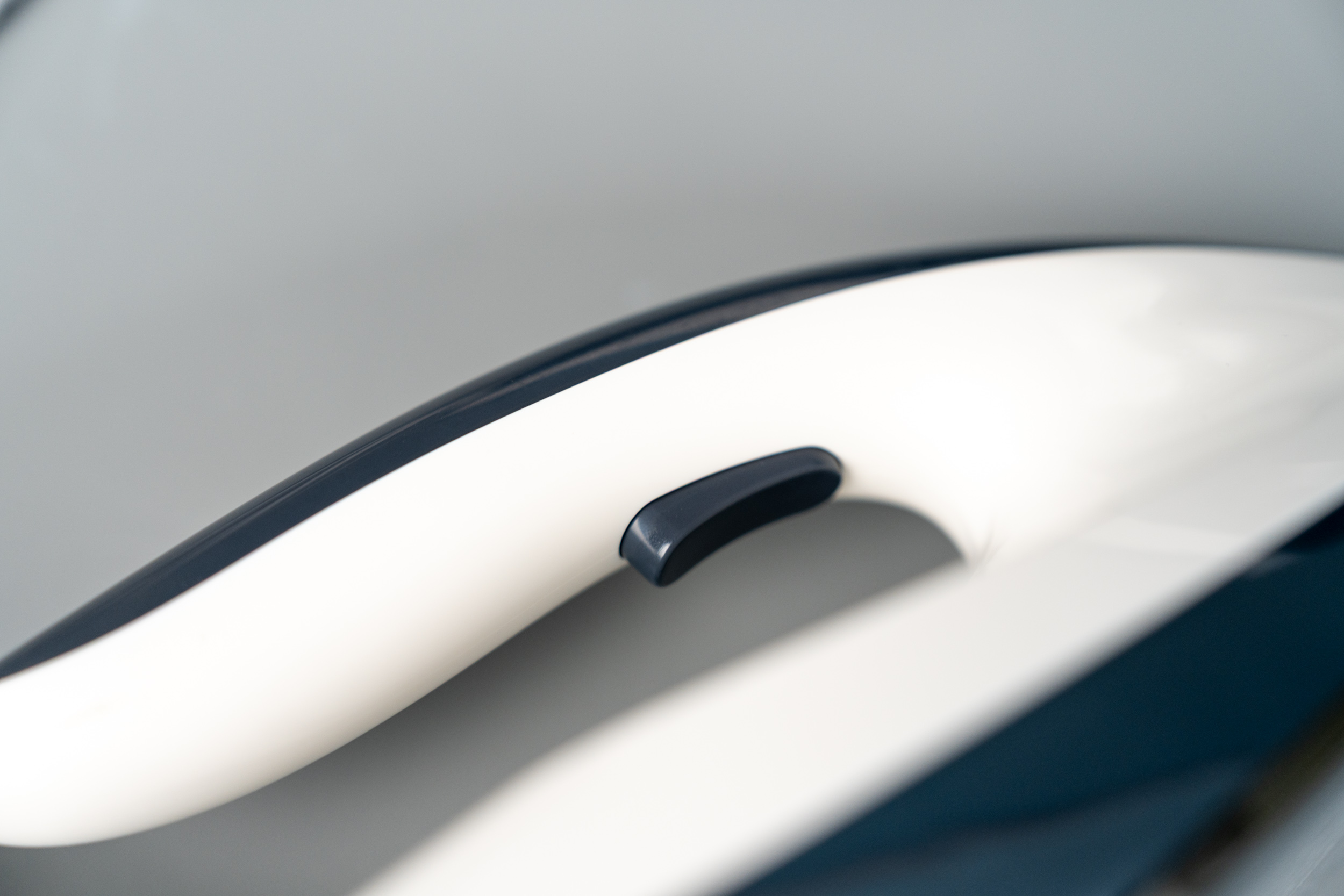 Парогенератор IS85 Ultimate выделяется среди других моделей за счёт цветового оформления. Основным цветом для данного парогенератора был выбран белый, который изящно подчеркнут синими акцентами. Конструкция включает в себя станцию со встроенным резервуаром для воды и утюг.