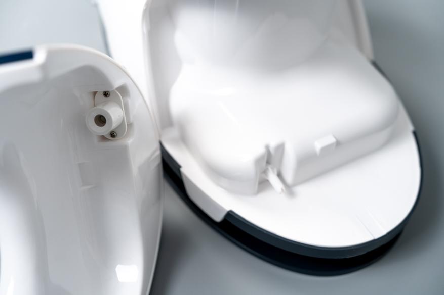 Резервуар для воды объемом в 2,1 л расположен во фронтальной стороне и является съемным для удобства заполнения. Его фиксация на корпусе осуществляется с помощью защелок и соединительного штуцера. Заливная горловина расположена на внутренней стороне станции.