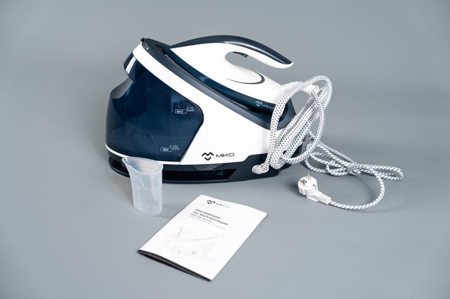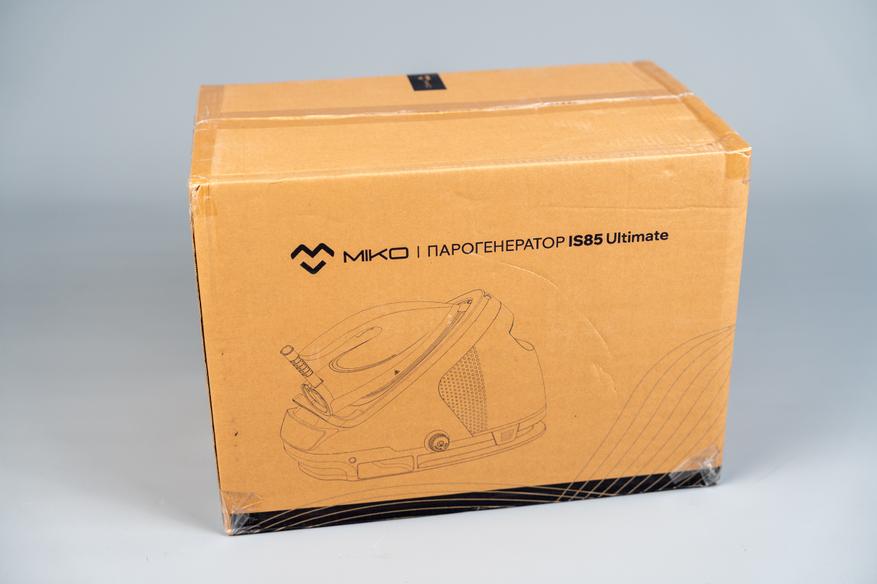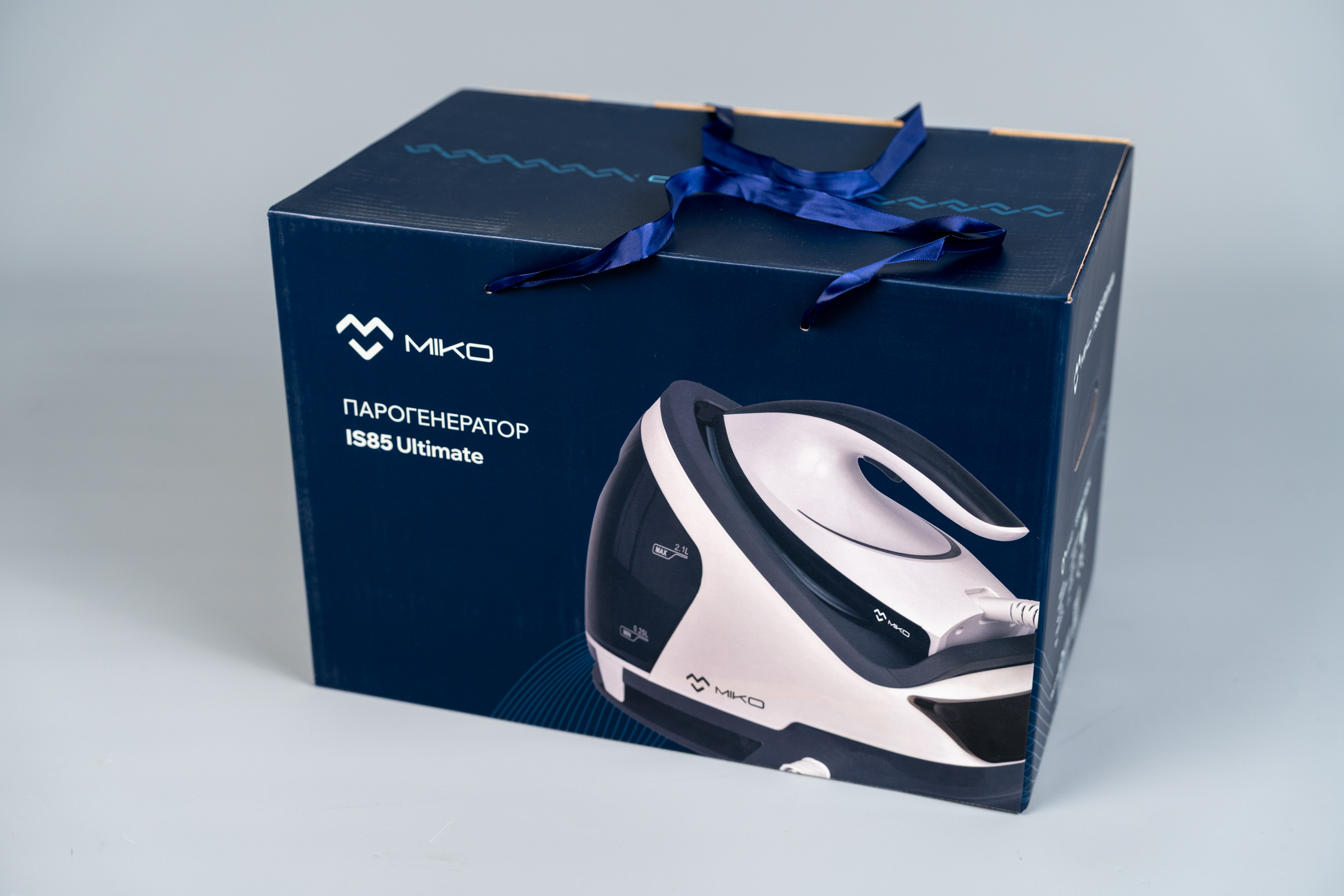 MIKO IS85 Ultimate поставляется в двухслойной упаковке. Основная коробка изготовлена из гофрированного картона и выполняет защитную функцию, предохраняя парогенератор от повреждений при транспортировке. Внутри находится основная коробка с глянцевой цветной полиграфией, оснащенная ручками для удобного извлечения устройства. Внутренняя компоновка включает защитные уплотнительные элементы которые надежно фиксируют парогенератор во время транспортировки. Комплект поставки к парогенератору включает в себя инструкцию по эксплуатации и мерный стакан для дозирования воды.