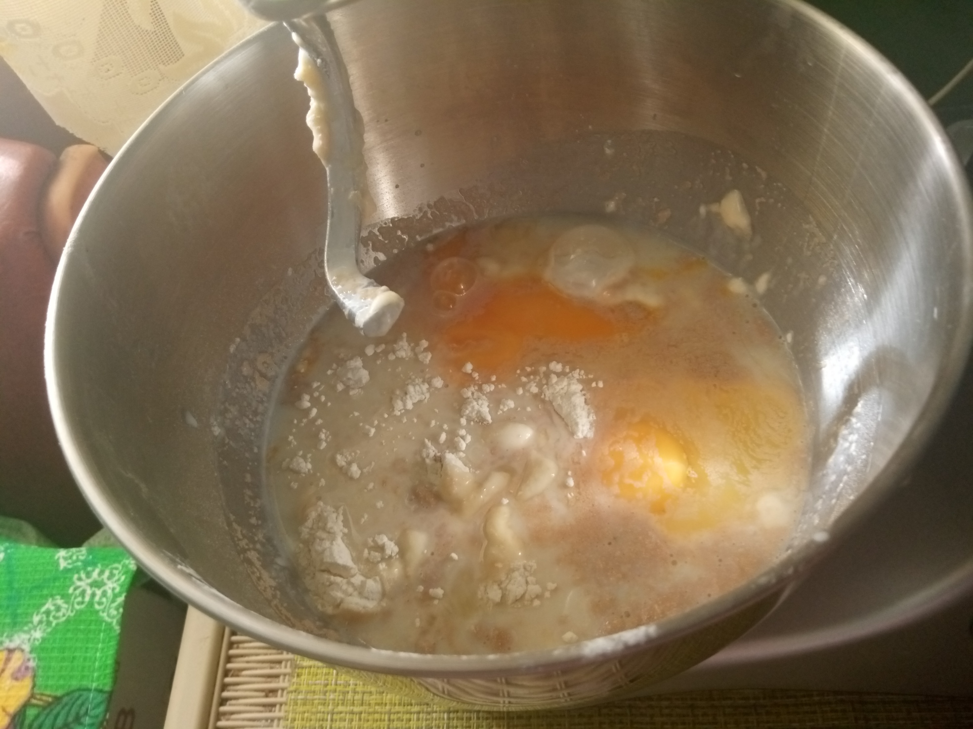 Тесто для пончиков. Все ингредиенты( мука, яйца, дрожжи, масло сливочное, сахар и соль) помещаю в чашу миксера. На миксер устанавлживаю насадку — крюк. Включаю миксер сначала на 1 скорость на 1-2 минуты, потом на 2 минуты на 2 скорости. Миксер полностью справился со своей задачей, тесто получилось лёгким и воздушным. Пончики зажарились очень аппетитные. 5 баллов из 5.