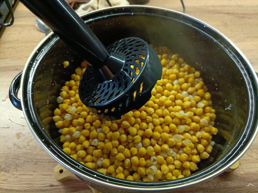 Насадка без проблем справилась с этой задачей. Забегу вперед и скажу, что изначально я хотел измельчить горох насадкой для пюре, но она не смогла с ним справиться. Просто забивалась и ничего сделать не смогла.