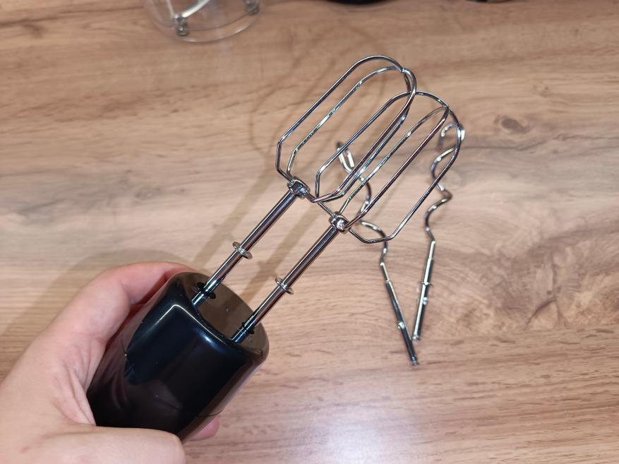 Каких-то минусов в этой модели я не выявил, хотя мне не хватает типичного венчика для взбивания и смешивания. Я просто не привык к двойному венчику, но зато такое решение позволяет смешивать как плотную консистенцию, так и жидкую.