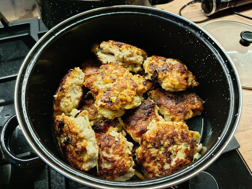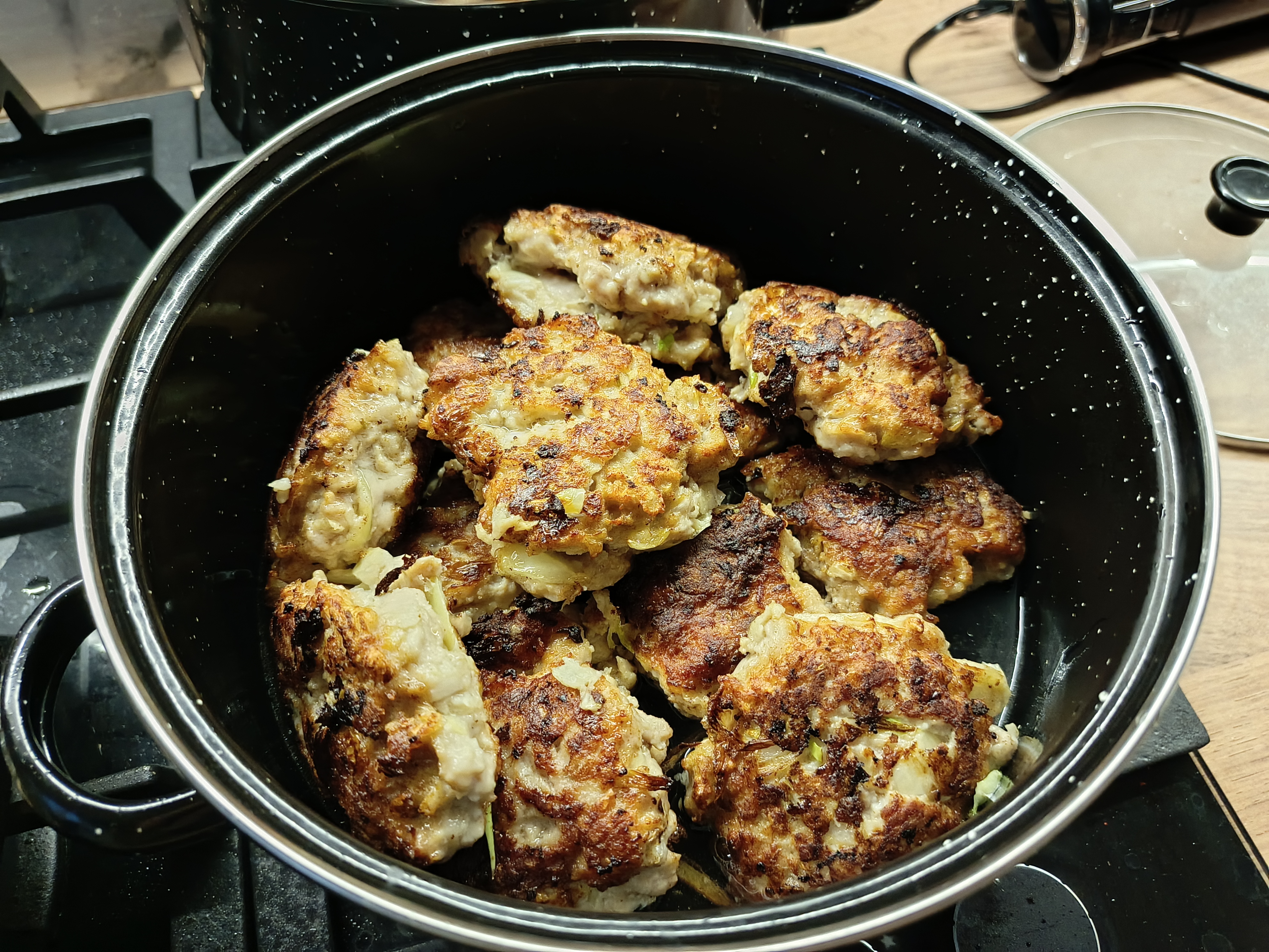 Дальше из приготовленной массы лепим котлетки и обжариваем на среднем огне до готовности. Можно еще потомить минут 10 под крышкой на медленном огне.