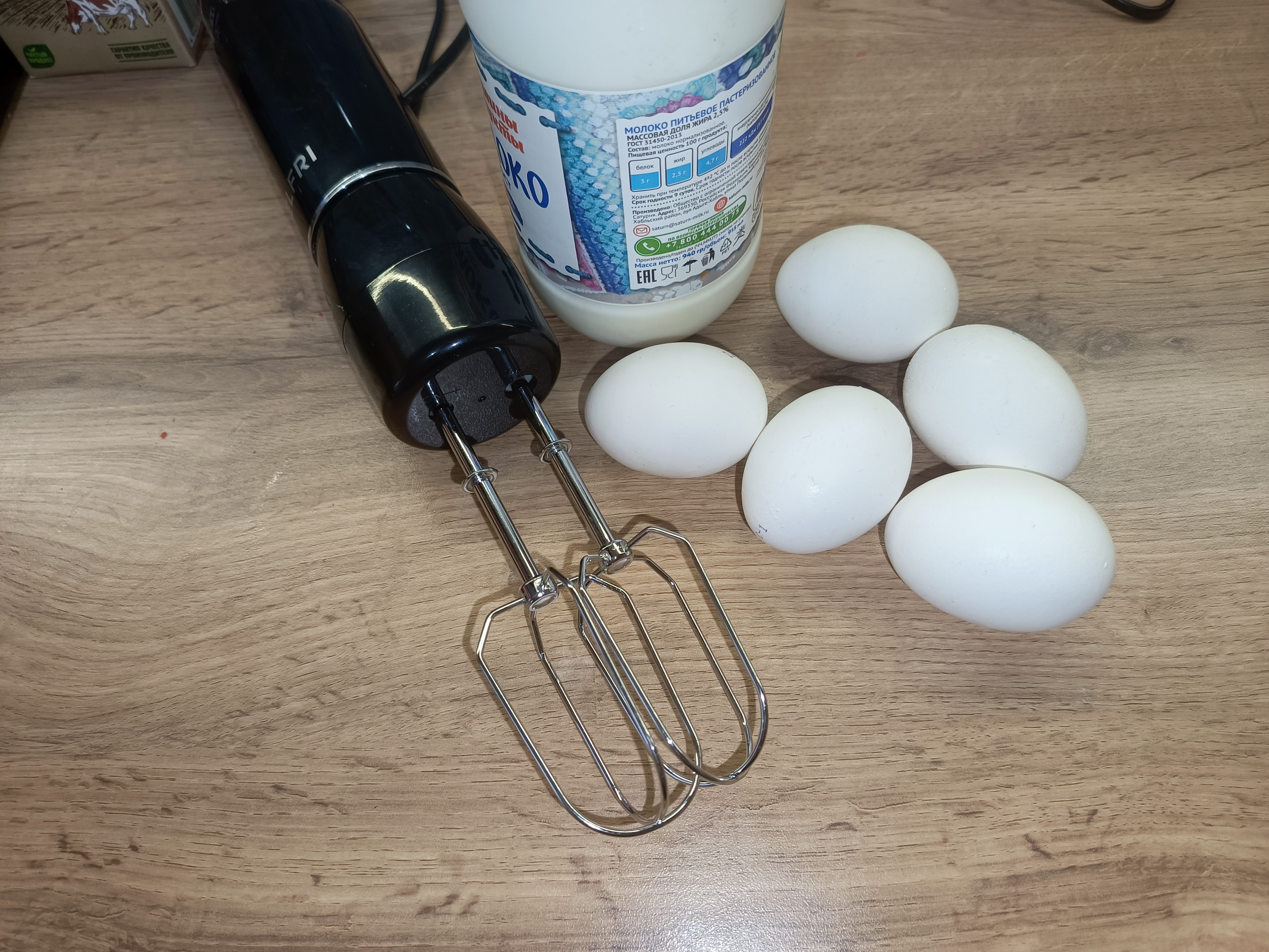 Для проверки удобства и работоспособности насадки миксера я решил приготовить омлет.