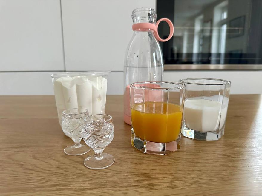 Все эти рекомендации я учла на практике. Для тестирования было решено приготовить два напитка. Это фруктовый смузи со сливками и сливочный коктейль с фруктовым соком, мороженым и белым ромом.