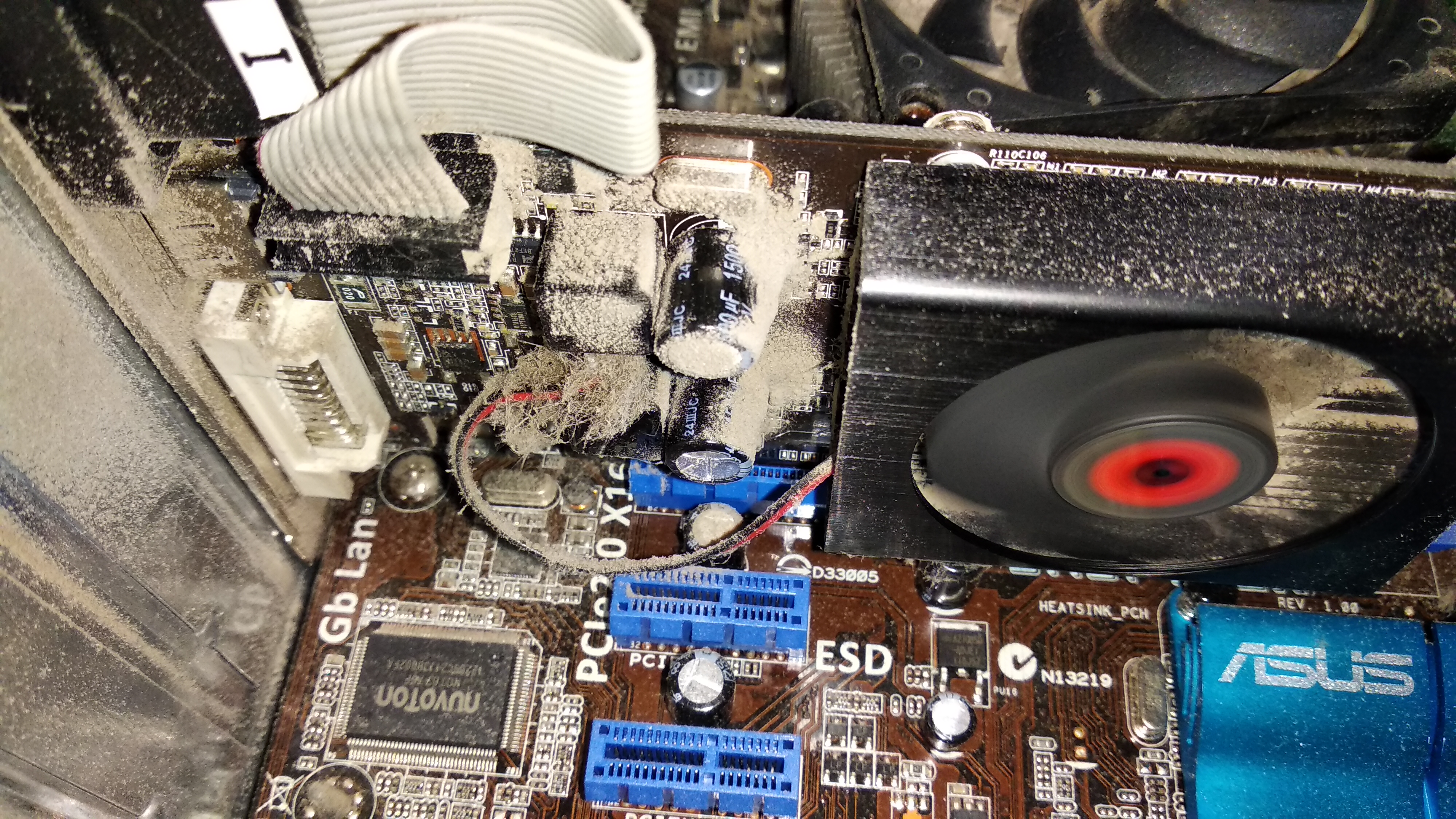 Т.к. воздуходувка и жилое помещение вещи несовместимые, то выносим все это добро на улицу, благо уже есть подсохшие места и запускаем пылесос в режиме выдува и чистим системный блок только за счет потока, без кистей и прочего инструмента. Разбирать принципиально не стал.