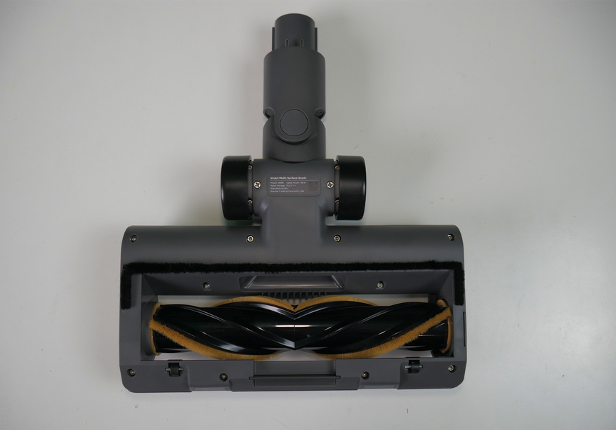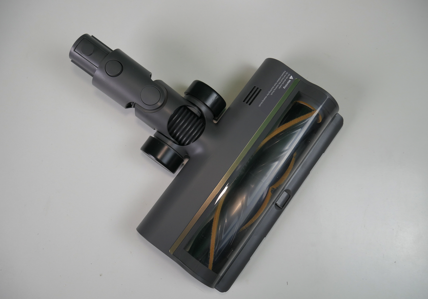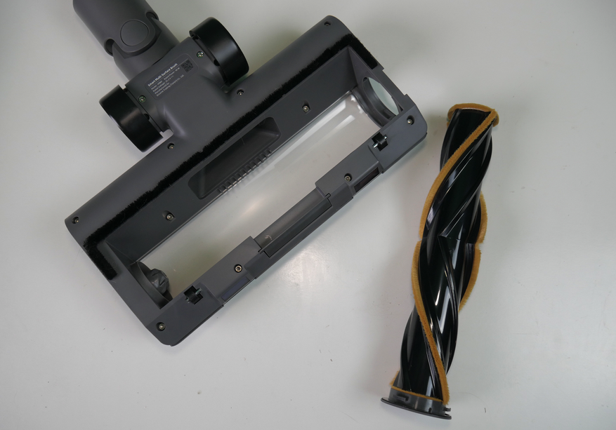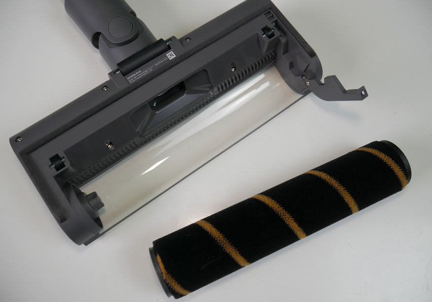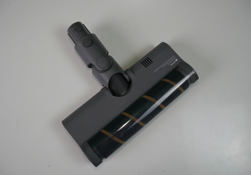 Тяжелая насадка с щёткой, унаследованная от R10, не самая удачная. Тяжелая, неповоротливая, с буфером, который мешает убирать у плинтуса. Зато у неё есть подсветка.