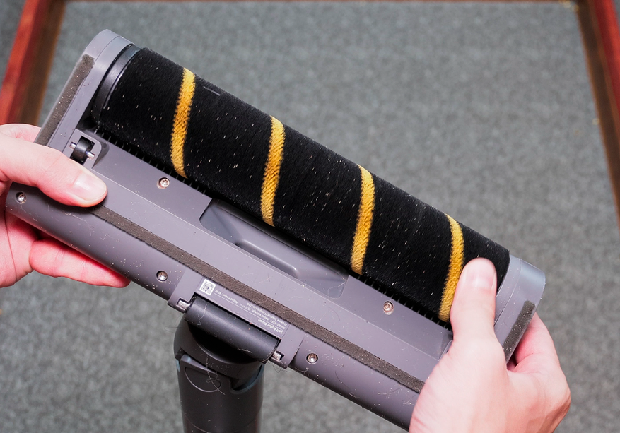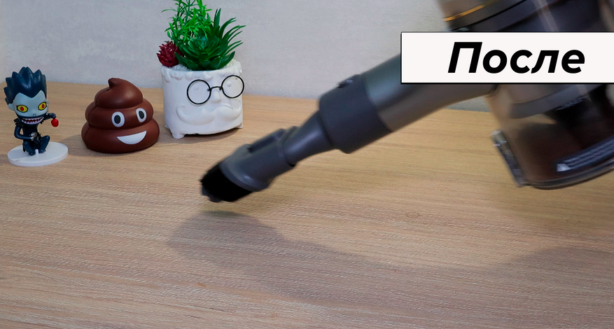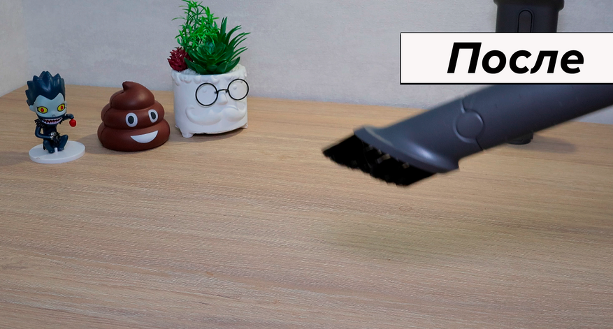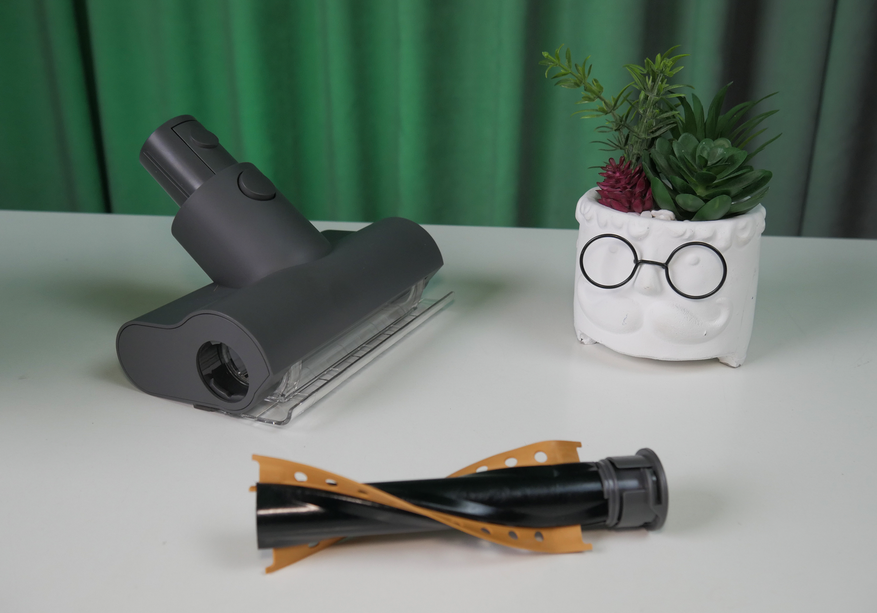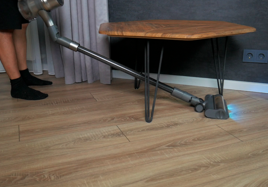 Мебельная насадка такая же спорная, как у R10 Pro, и повышенная мощность не спасает. Пыль высасывает уверенно, а вот волосы собрать с поверхности не может — приходится махать очень долго.