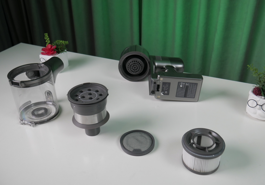 Пылесборник (600 мл) разборный, с 5-ступенчатой фильтрацией, включая микроциклоны и НЕРА-фильтр. Здесь всё по высшему классу (хотя класс самого НЕРА-фильтра остался неизвестен).