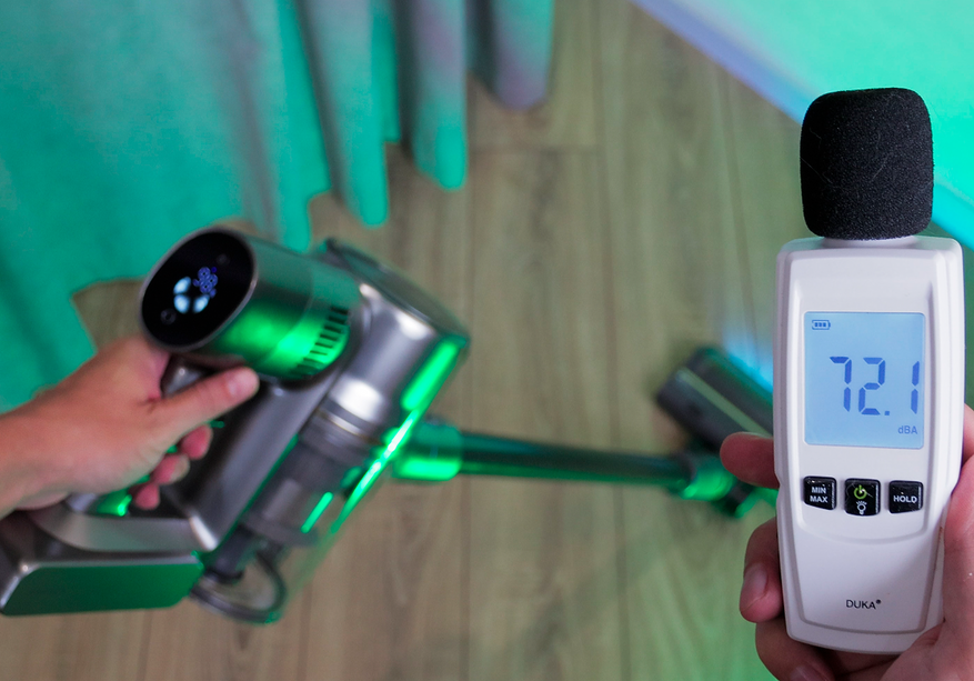Уровень шума на удивление низкий — в пределах 72 дБ. Как у какого-нибудь робота-пылесоса.