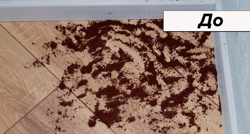 Ковролин — тоже за 2 прохода, но уже на максималках. Уровень загрязнения экстремальный, но R20 это смущает. Затягивает песок, пыль и волосы. Вдоль стен чуть сложнее, но это нормальная ситуация.