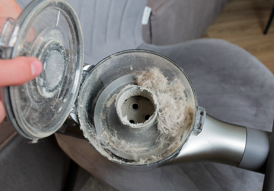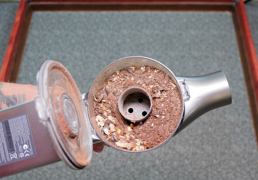 Регулярно обслуживать рабочие инструменты не требуется — они практические чистые, хотя волос в пылесборник попало не мало.