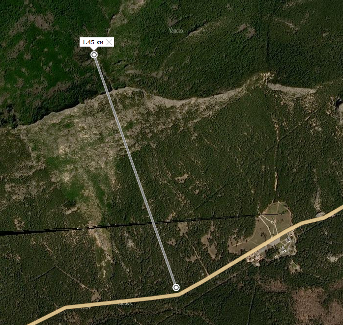 Также мы в течении нескольких дней использовали рации просто при прогулках по лесу между несколькими группами людей. Самое дальнее расстояние, которое достигли в эти дни составило также около 1.5км. Это расстояние между лодочной станцией около скалы Жумбактас и поляной АбылайХана: