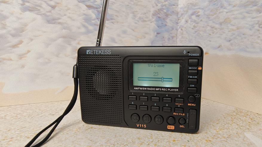 Retekess V115 оснащен небольшим встроенным динамиком, который обеспечивает чистый звук на средних уровнях громкости. Для новостных передач и радиопрограмм его возможностей вполне достаточно. В условиях комнаты мне хватает громкости в 15 из 32 пунктов, если в комнате несколько человек и разговоры, то комфортная громкость на 25, при этом на максимальной громкости могут возникнуть искажения, особенно при воспроизведении музыкальных треков с насыщенными басами. Последние 2 пункта громкости лучше вообще не использовать, слушать приемник на такой громкости становится не комфортно.