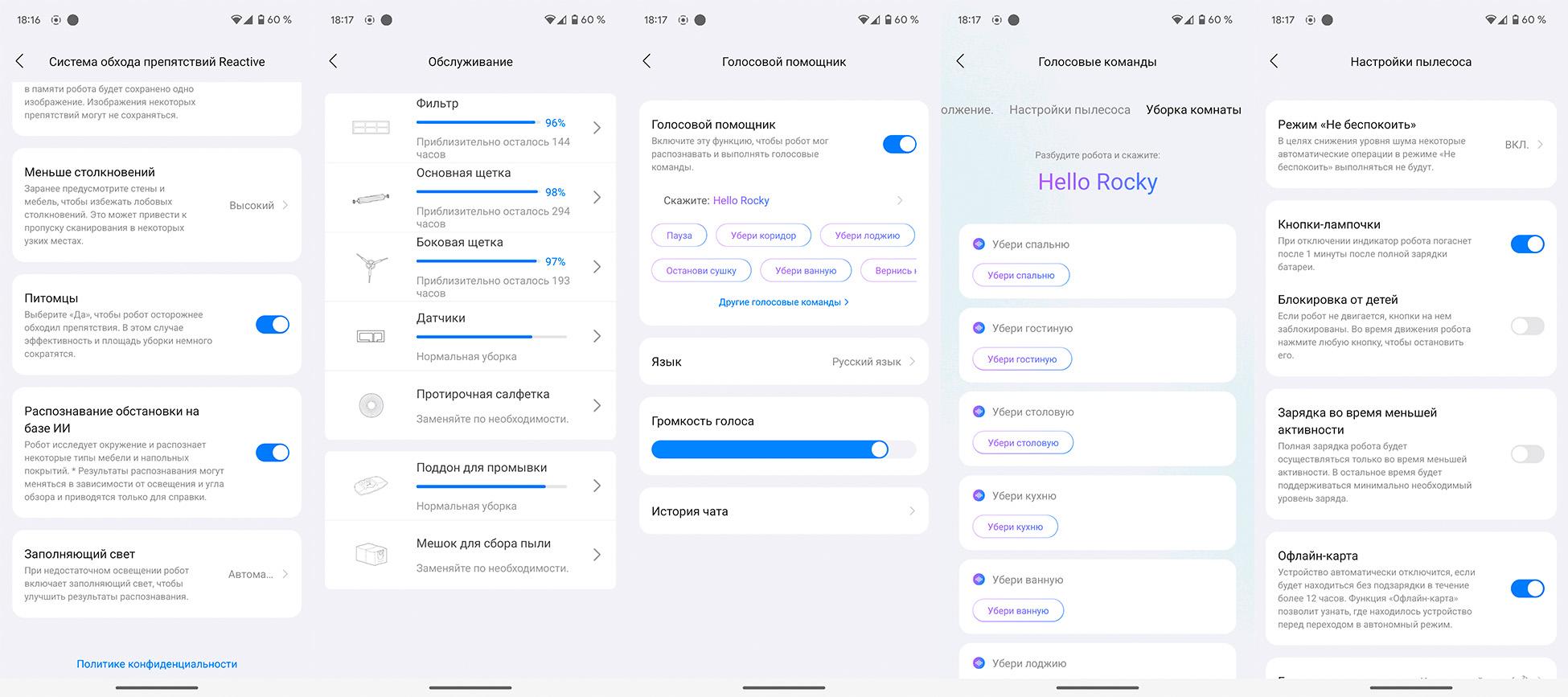 В действительности, функциональных возможностей огромное количество. Чтобы настроить пылесос по своим предпочтениям, у вас уйдёт не один вечер. Ну, либо вы просто можете нажать кнопку «Smart Plan», и робот всё сделает сам (но результат может удивить). Следует заметить, что в ЕАС-версии пылесоса голосовой помощник «Hello, Rocky!» адекватно распознает голосовые команды на русском языке.