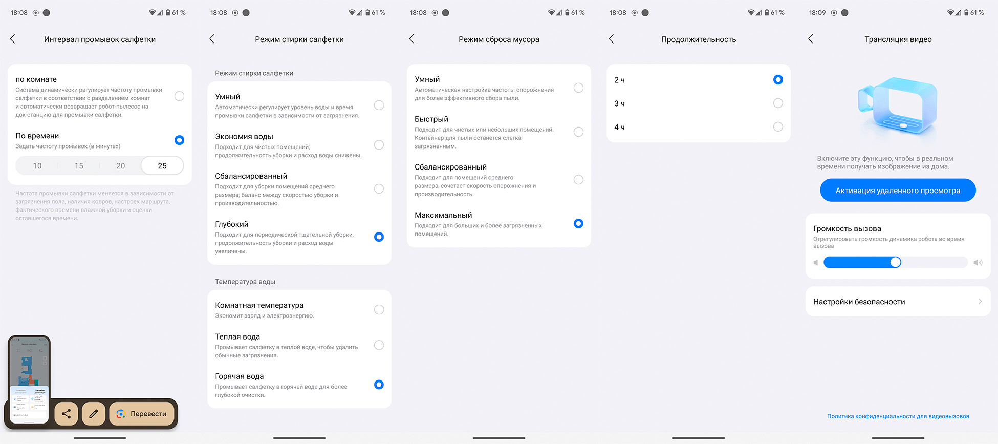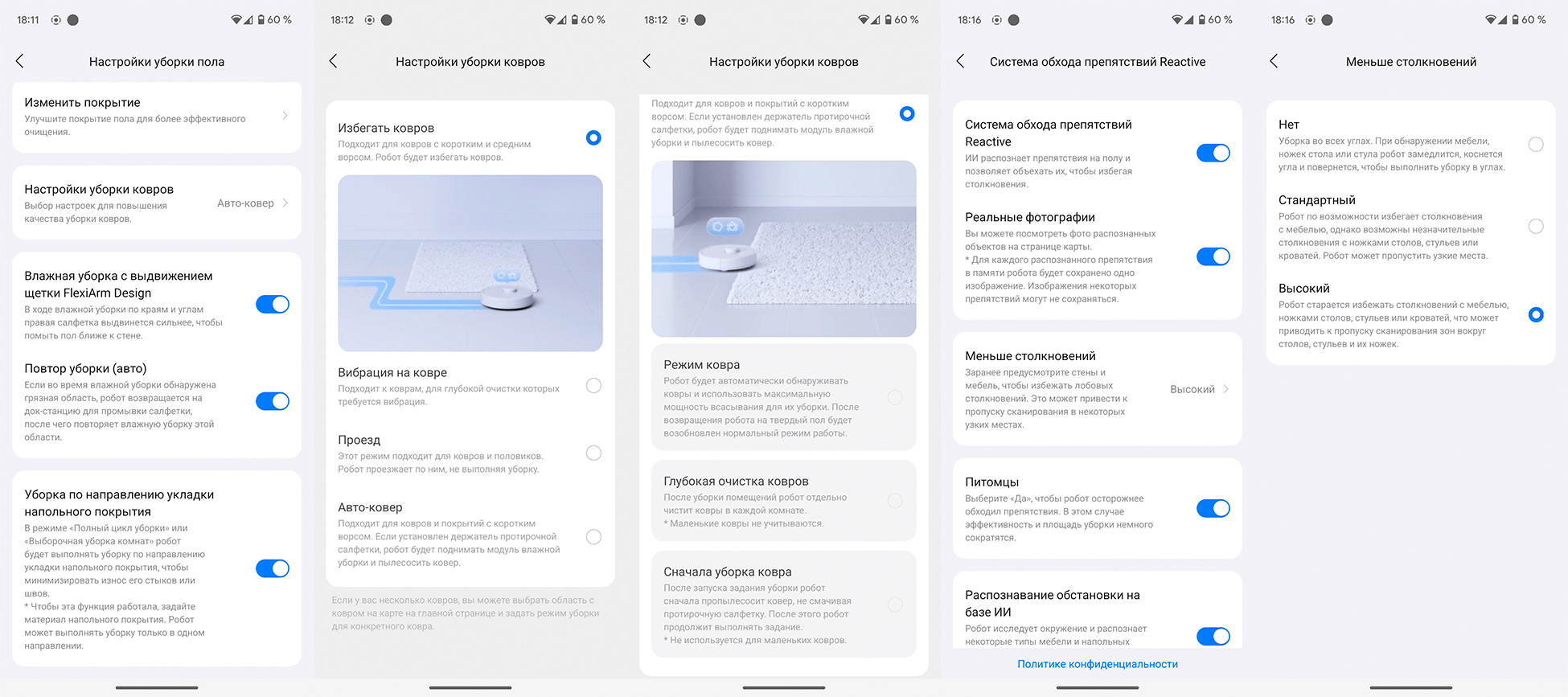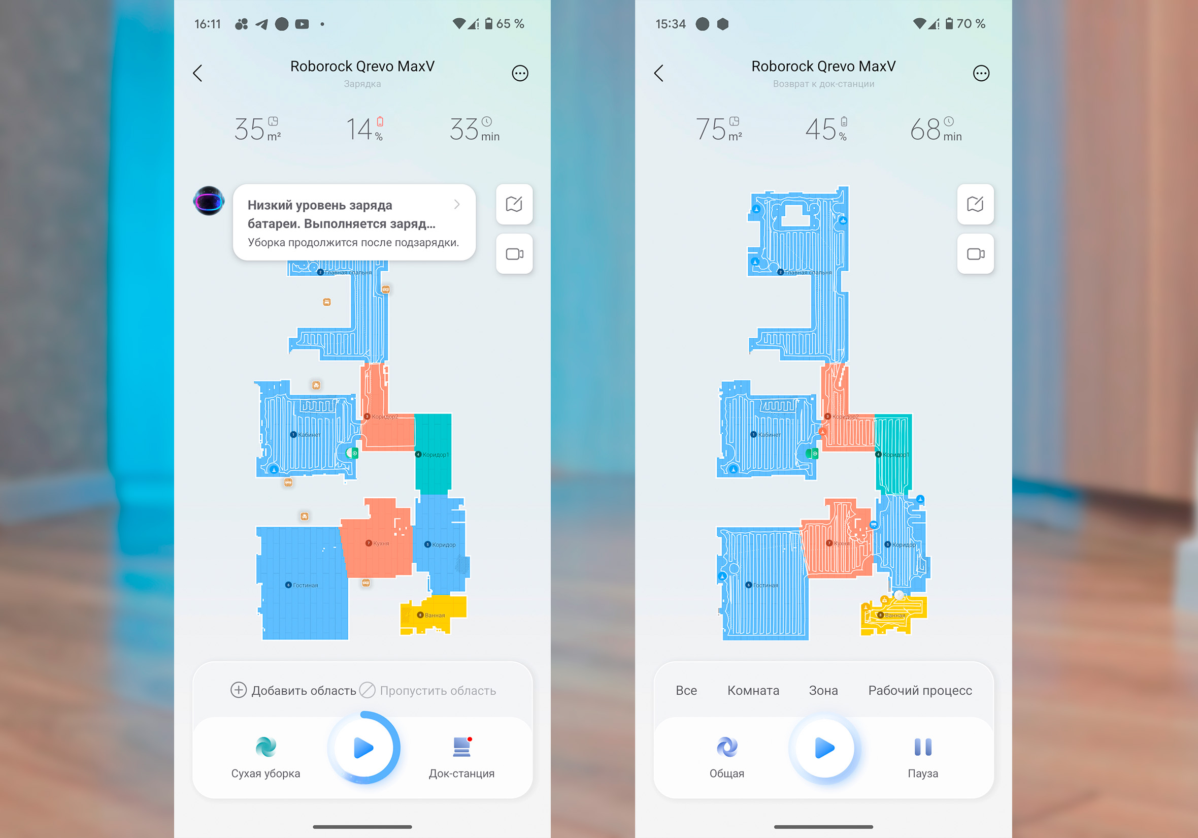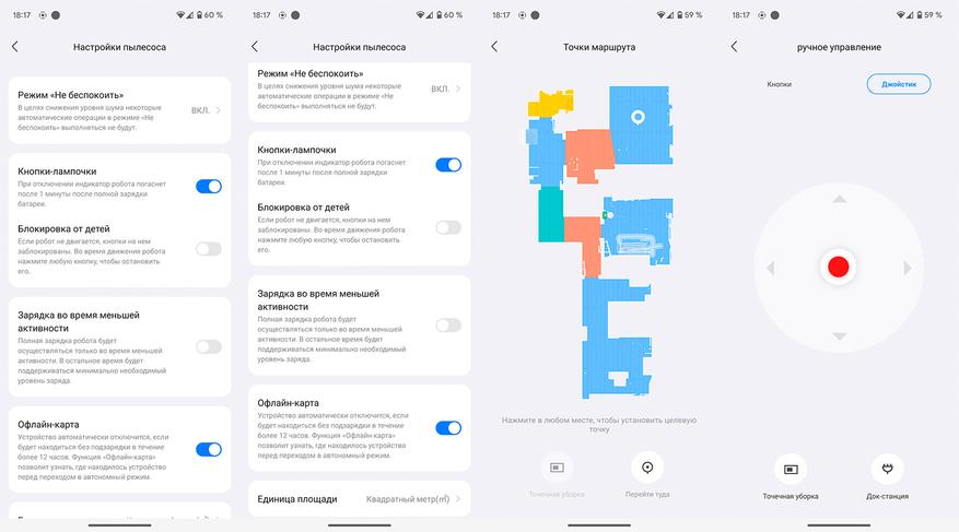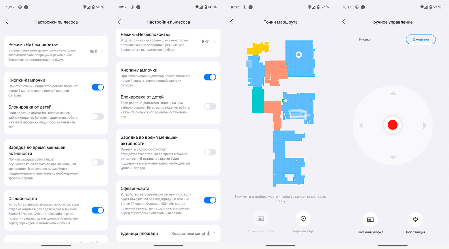 - многоуровневое помещение с сохранением до 4 карт (важно учитывать, что на картах без станции робот сможет делать только сухую уборку!);