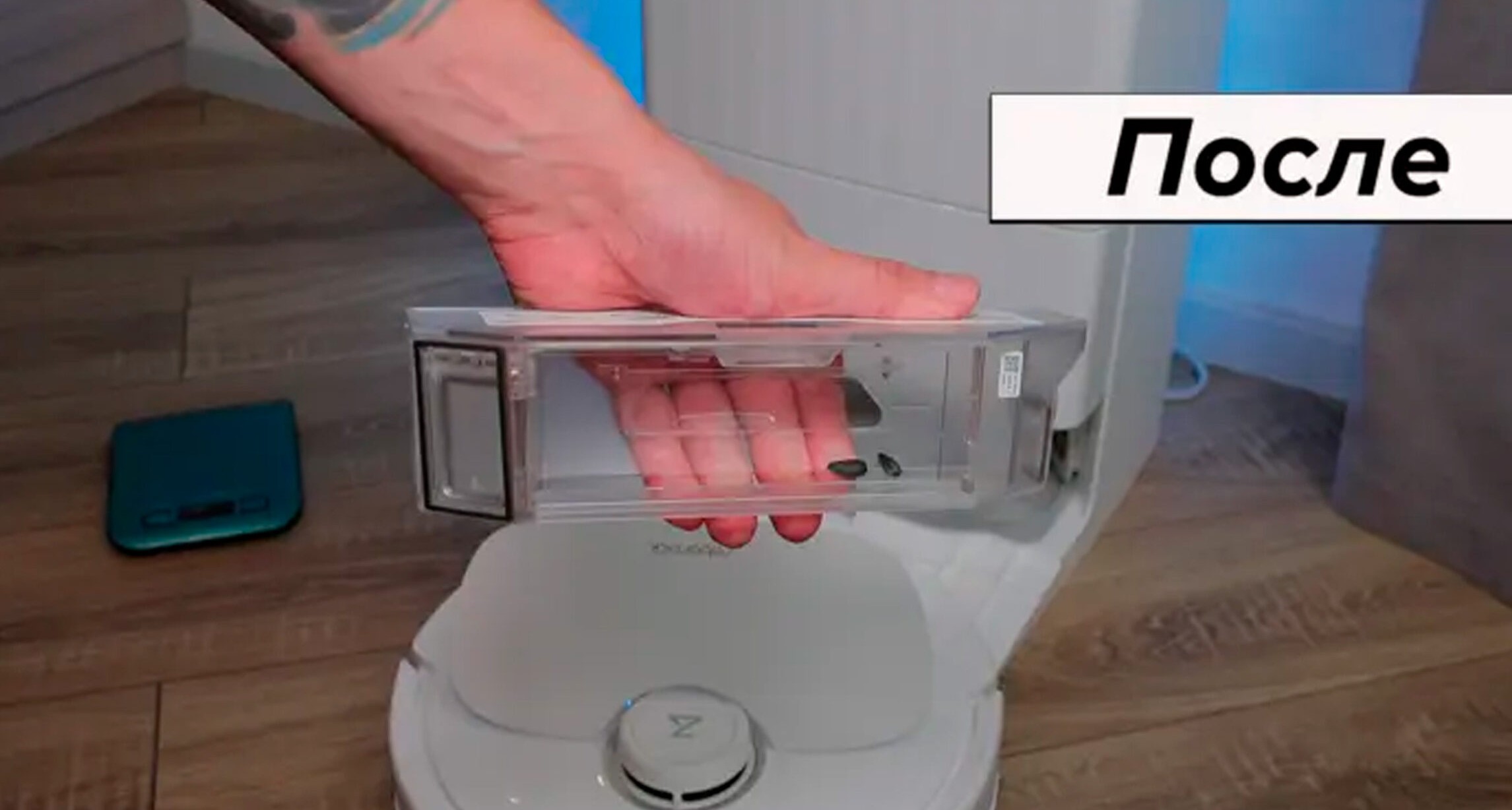 Автоматическая очистка пылесборника занимает 20 секунд с уровнем шума до 71 дБ. К качеству очистки нет малейших претензий — по всем тестам станция выдала уверенные 100%.