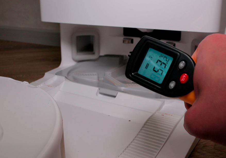 С сушкой у Roborock Q Revo MaxV полный порядок. Пластик в продуваемой области нагревается до 56*С, и по итогу салфетки высыхают гораздо раньше, чем проходят отведенные 2 часа.