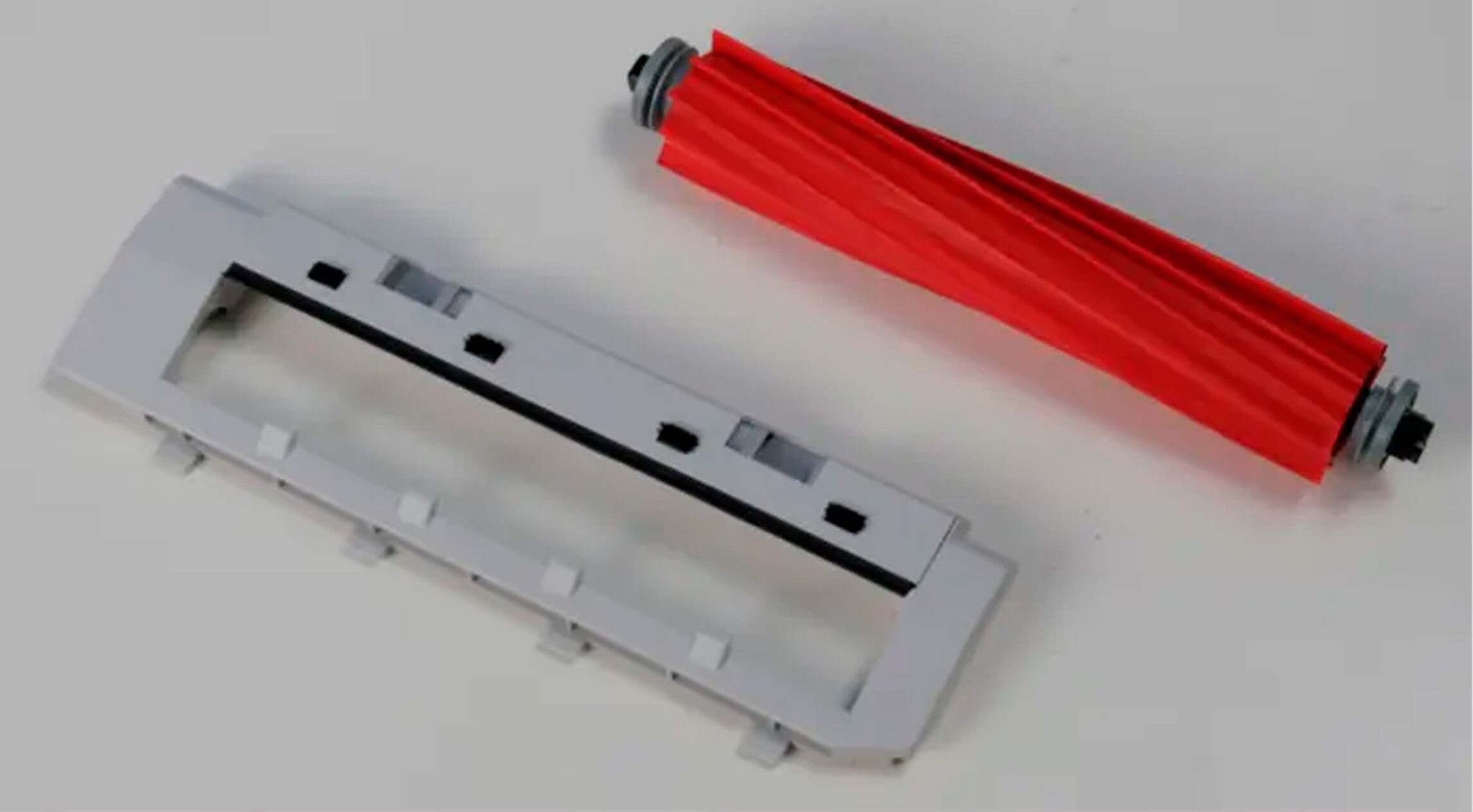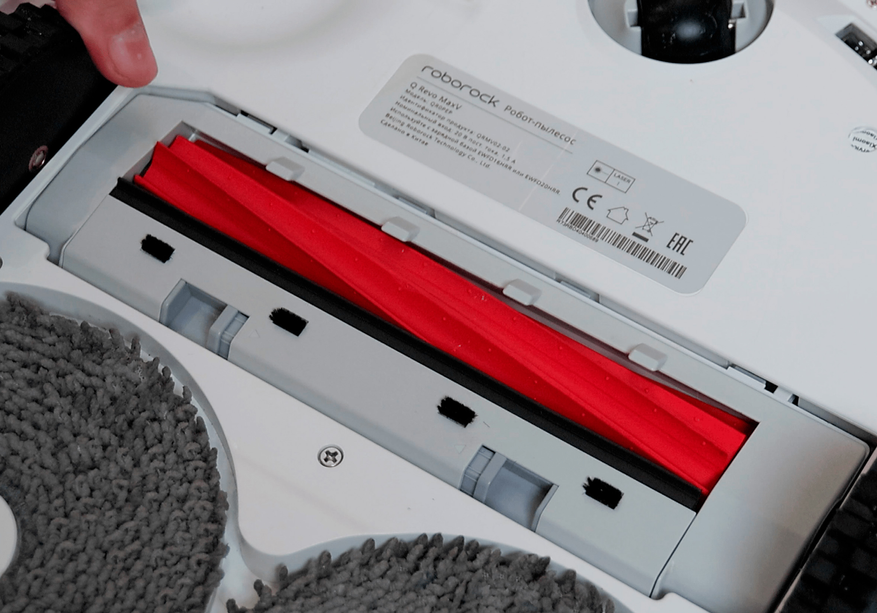 Рабочий блок привычный — резиновый валик в «плавающей» рамка, но подвес теперь только один, поскольку инженерам нужно было интегрировать механизм подъема щётки во время влажной уборки.