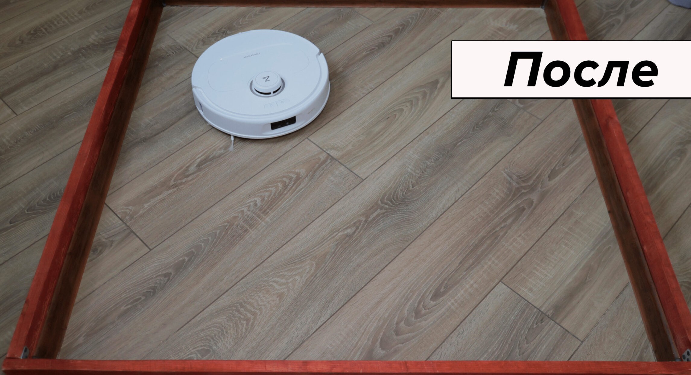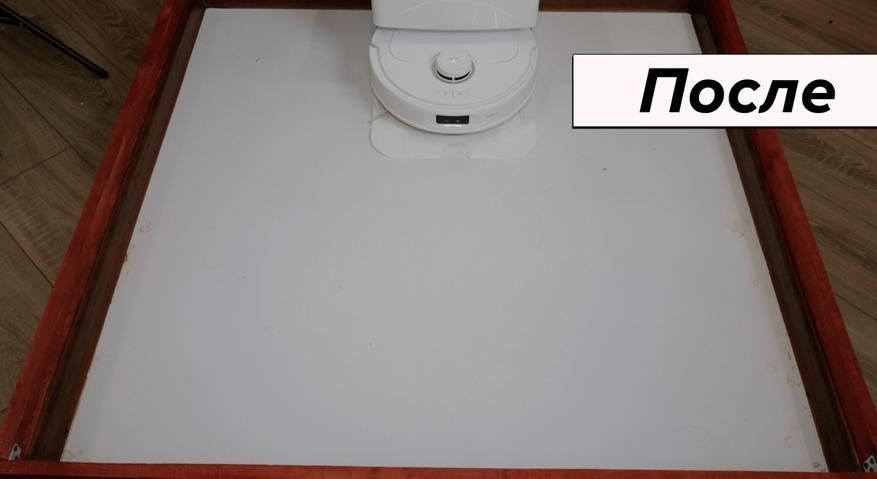 При навигации в комнате с мебелью проблем не возникло. Подопытный объехал шторы и сушилку, обмёл каждую ножку мебели.