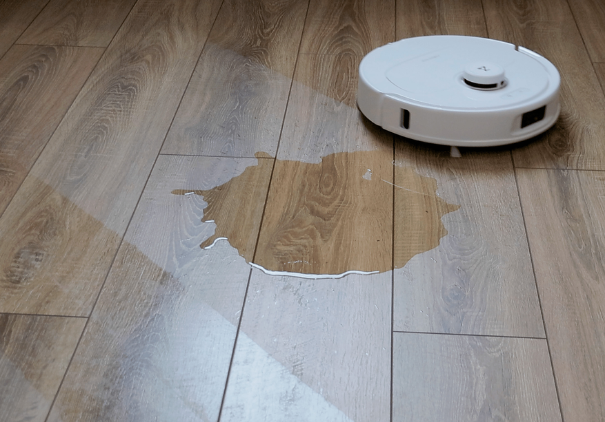 А вот на лужи не реагирует. Щётка поднимается только если изначально выбрать режим влажной уборки.