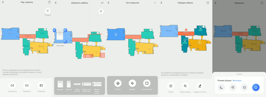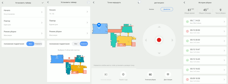 - настройка параметров уборки в зависимости от напольных покрытий;