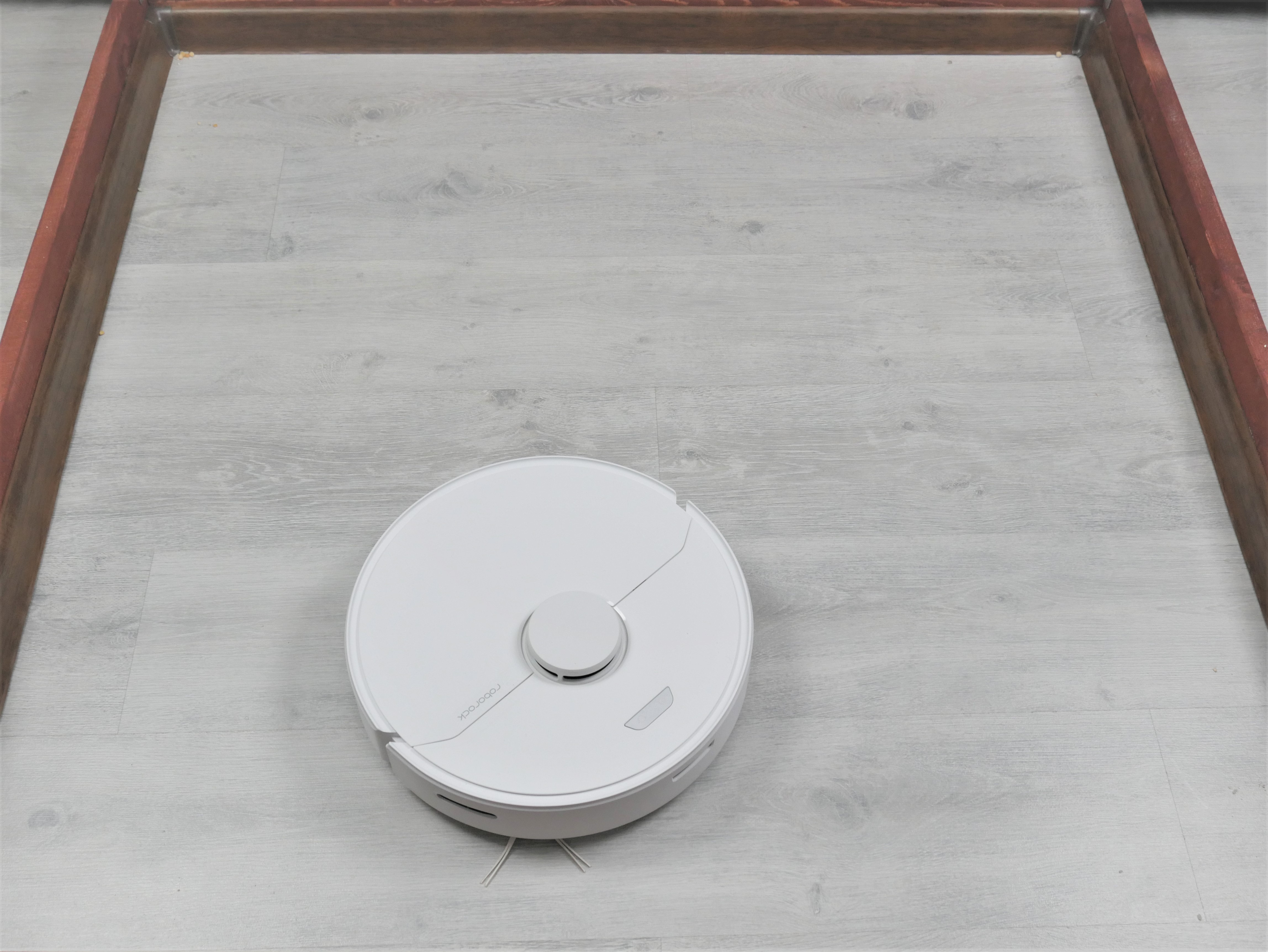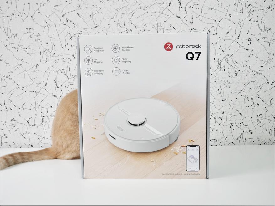 Roborock Q7 хорошо ориентируется в захламленной комнате: не сдвигает предметы, попадающие в зону видимости лидара; обметает каждое препятствие; понимает, где переезжать ножки сушилки; не боится черных ковров. При заезде на ковры, в том числе черные, робот автоматически повышает силу всасывания. Пороги высотой до 20 мм перескакивает без затруднений.