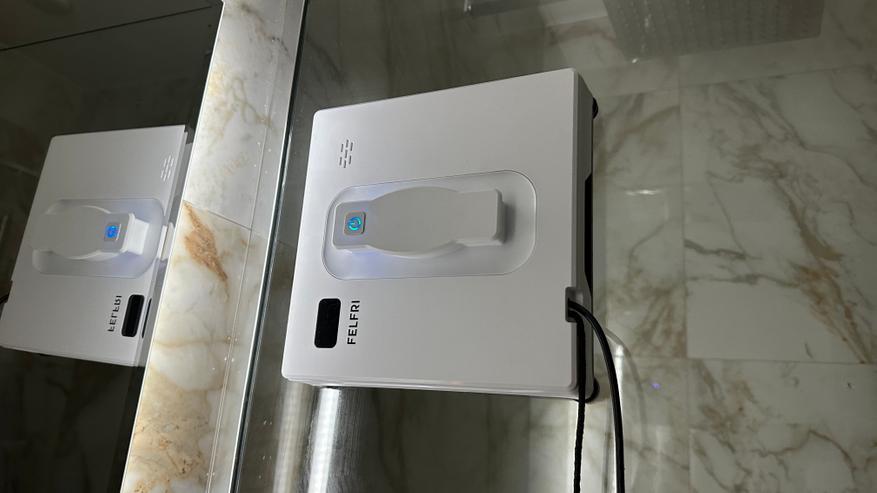 Самое удивительное, что возможности Felfri FF- WC- 02 не ограничиваются окнами. За время тестов он спокойно справился с остеклением в ванной, с кафелем на кухне и в санузле. Любая гладкая вертикальная поверхность — это его стихия. Причём он не просто протирает, а действительно отмывает без подтеков и без следов.