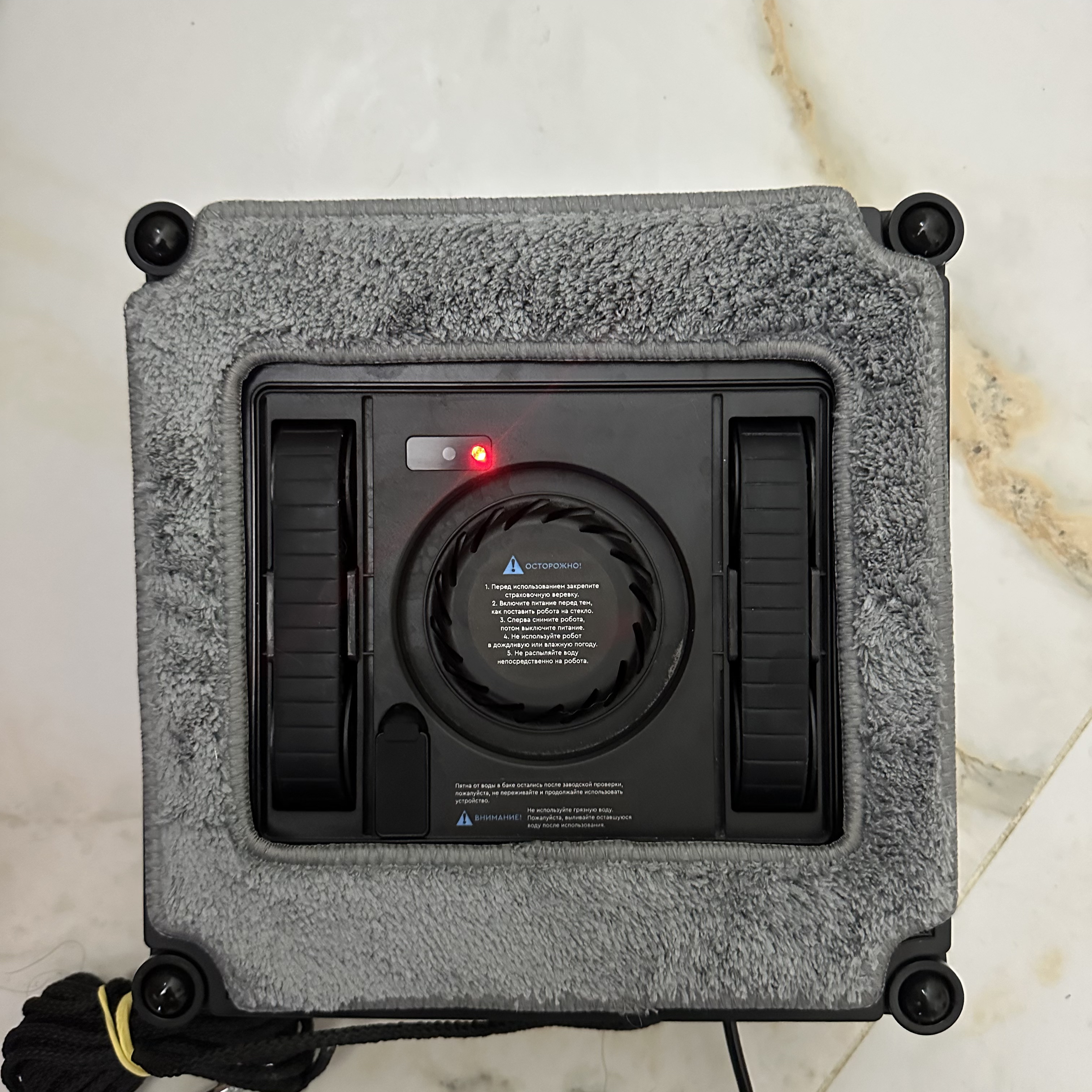 Отдельно стоит отметить важную функциональную деталь — это встроенный аккумулятор. Напомню, устройство сетевое и на автономную работу не рассчитано. Ёмкость аккумулятора составляет 500 мАч, и его задача не работать, а страховать. В случае отключения питания он удерживает робот на стекле и предотвращает падение. То есть это не альтернатива кабелю, а защита от непредвиденных ситуаций.