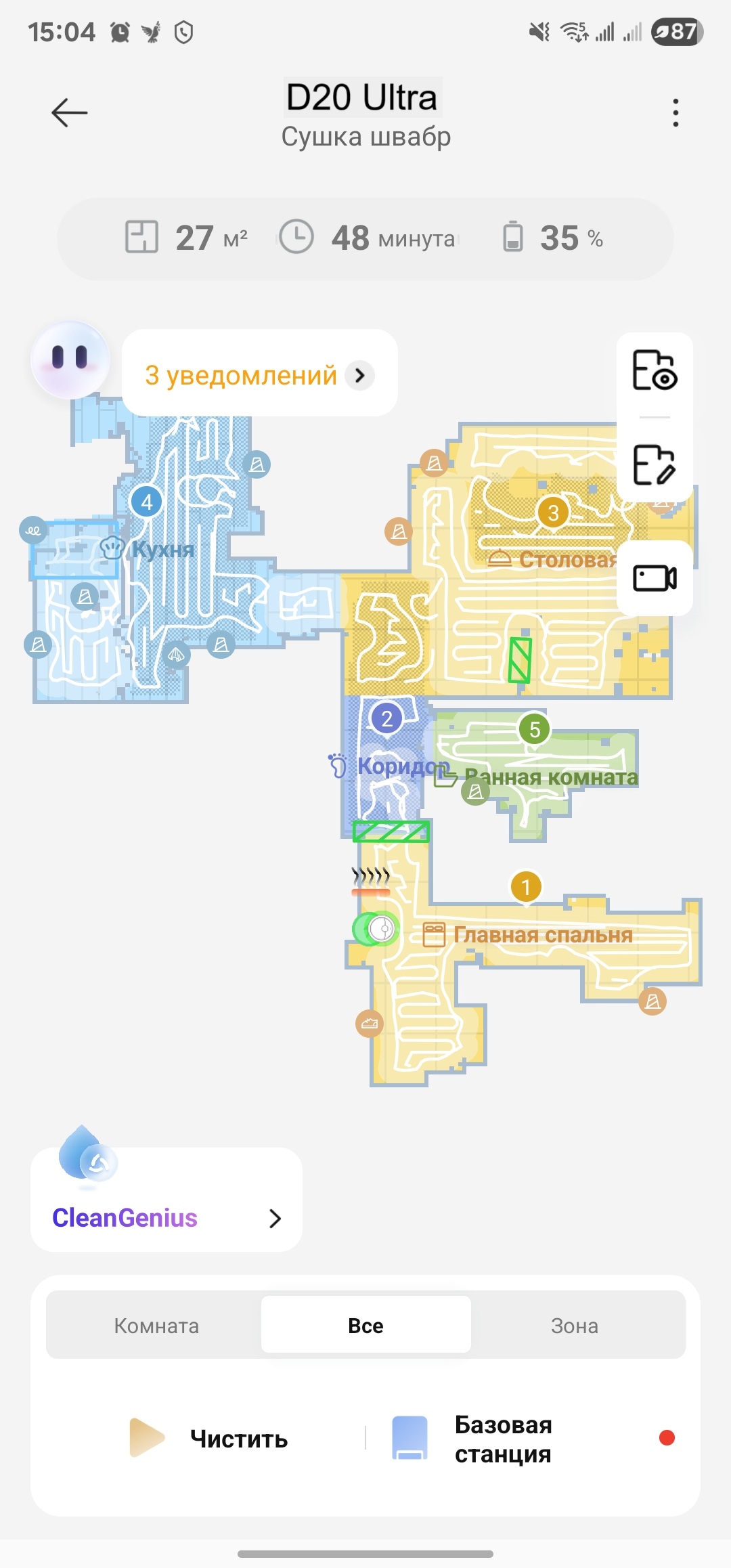 | Станция | Удаление мусора, мойка, горячая сушка, подзарядка |