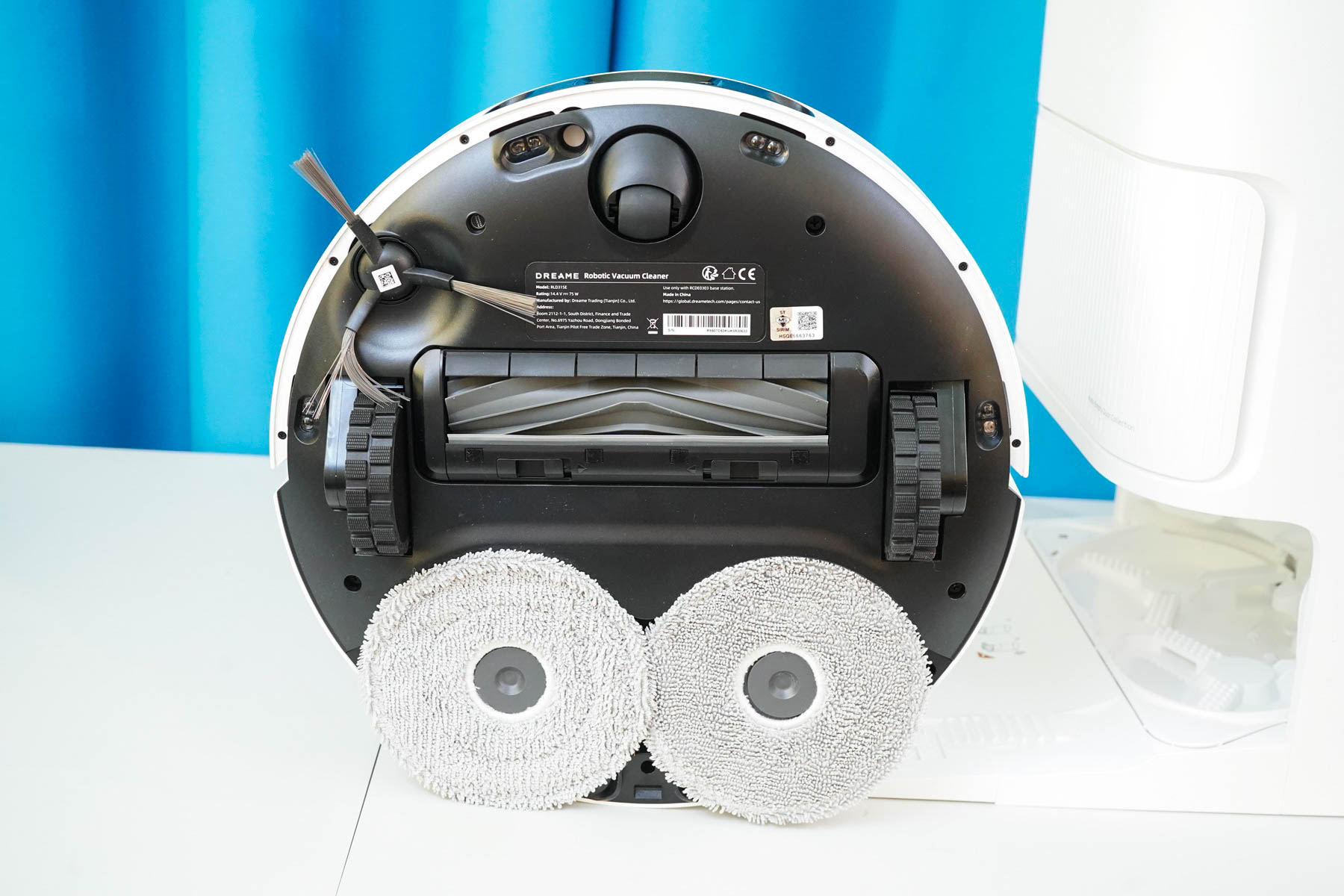 В отличие от моего старого робота, который оставлял пыль в углах, робота Dreame D20 Ultra научили протирать салфетками, вращая и приближая заднюю часть корпуса. При приближении к стене или углу робот специально поворачивается задней частью с модулем влажной уборки таким образом, что обеспечивается протирка мест в углах/у плинтуса. Сами круглые салфетки вращаются, что обеспечивает оттирание засохших пятен, в отличие от роботов неподвижной салфеткой.