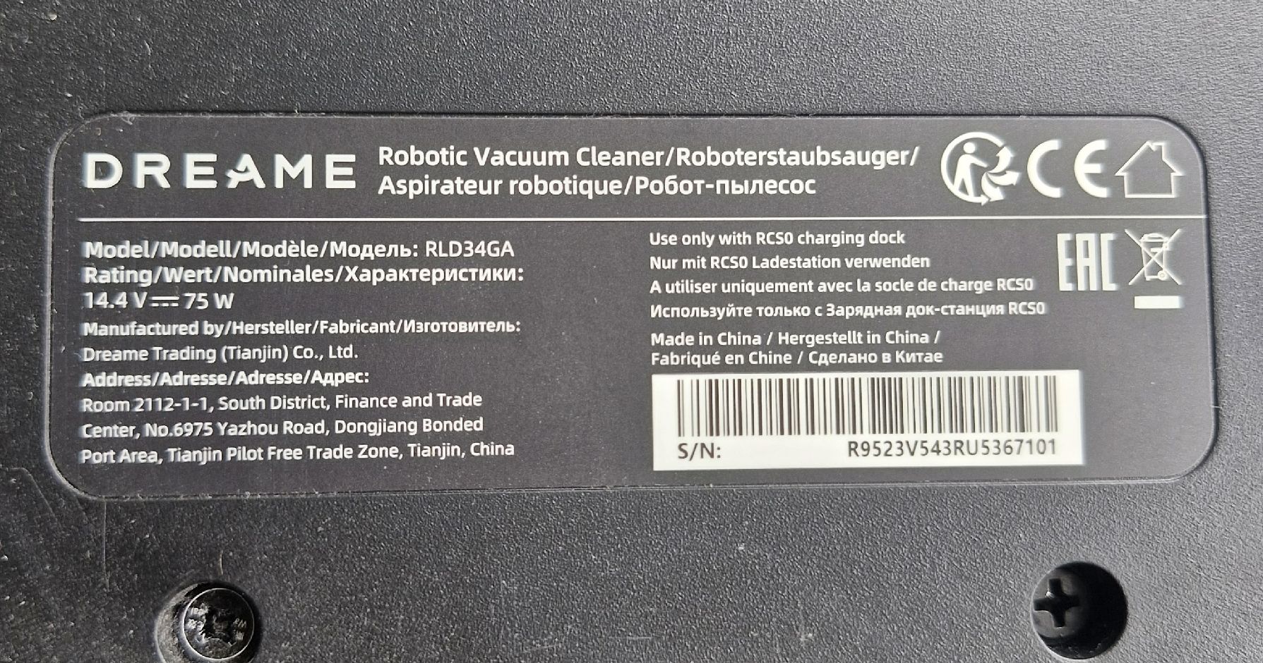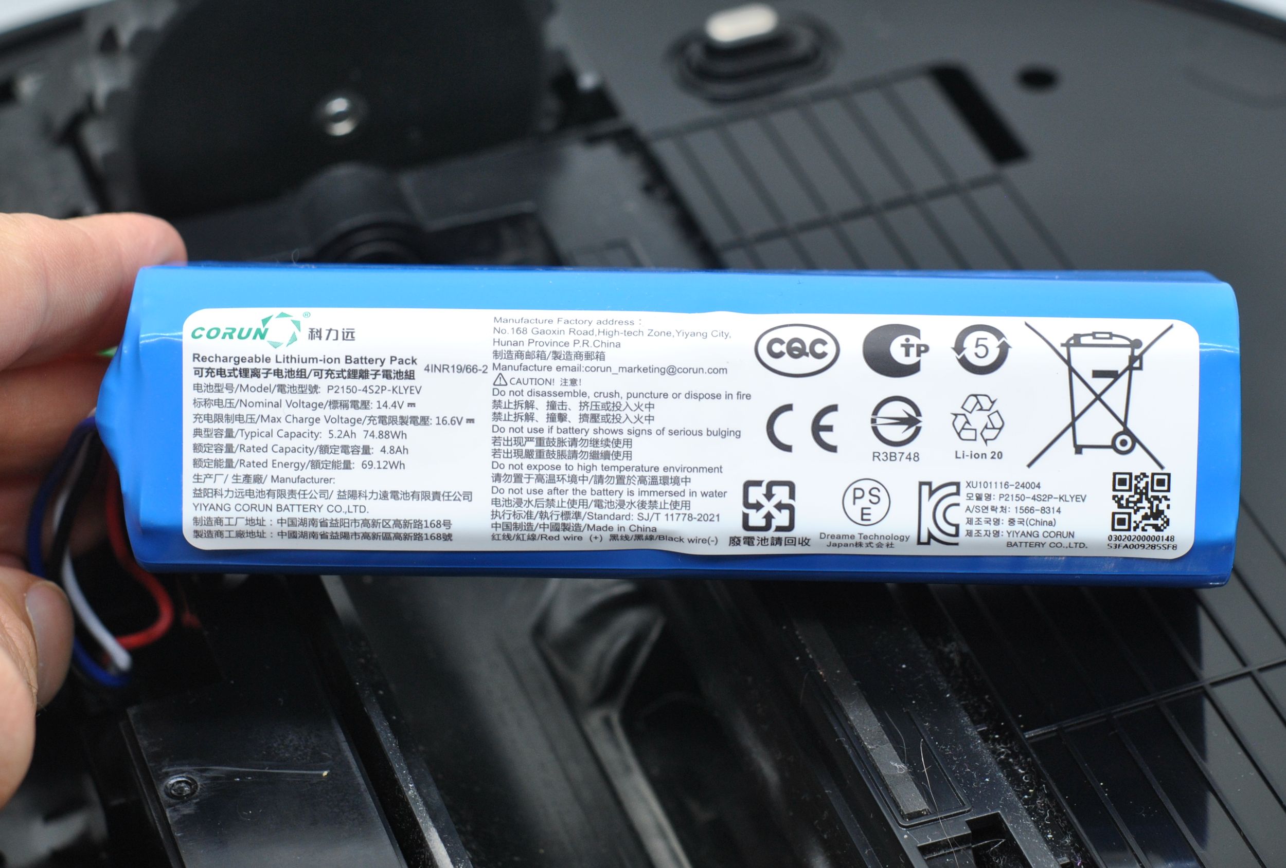 Изготовлен пылесос в Китае. Гарантийный срок 12 мес. Есть и белый цвет корпуса и зарядной станции.