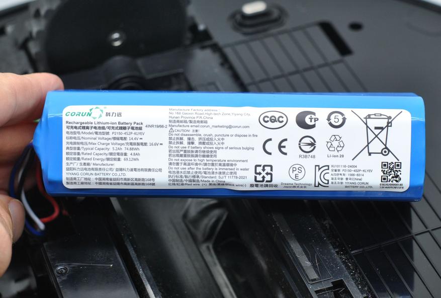 Мою квартиру (43 м2 площади под уборку роботом) убирает за 50 минут (высокая сила всасывания), расходует при этом 20-30% (с влажной уборкой) заряда АКБ. Емкость аккумулятора под большую квартиру или дом.