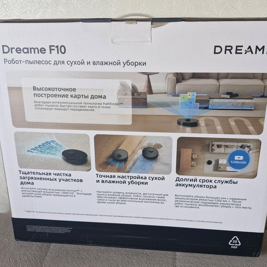 Регулярная уборка жилья — процесс нужный, но отнимает время и силы. Хорошо, что за чистотой напольного покрытия можно назначить следить современного робота — пылесоса. Сегодня рассмотрим такую модель с комбинированной уборкой (сухая и влажная) от китайской компании Dreame. Модель F10 обладает высокой среди схожих моделей силой всасывания пыли (13 кПа), строит карту помещения с помощью лазерной навигации, оснащена плавающей турбощеткой и распознает тип напольного покрытия. Ниже мнение о модели по итогам месячной эксплуатации.