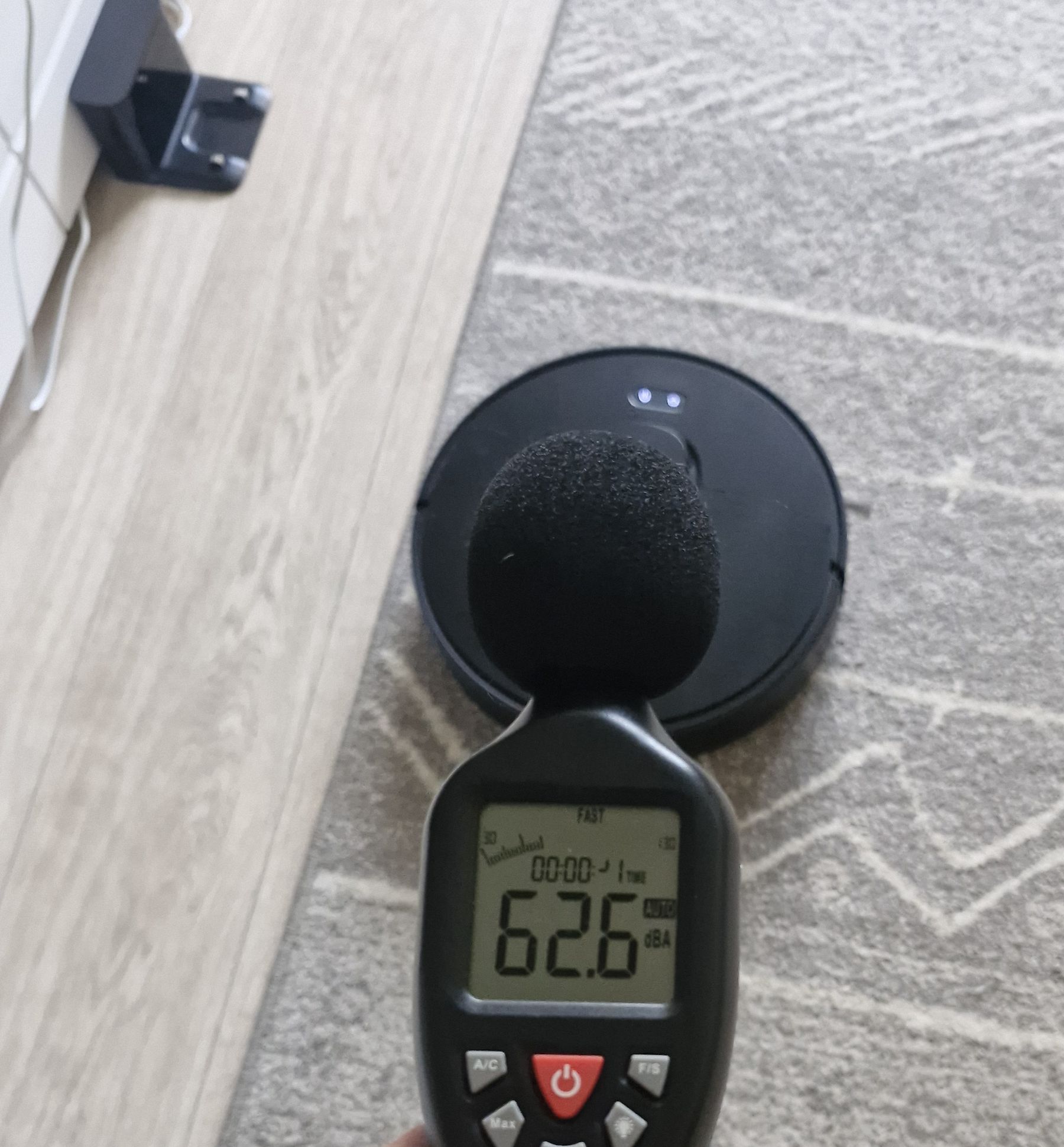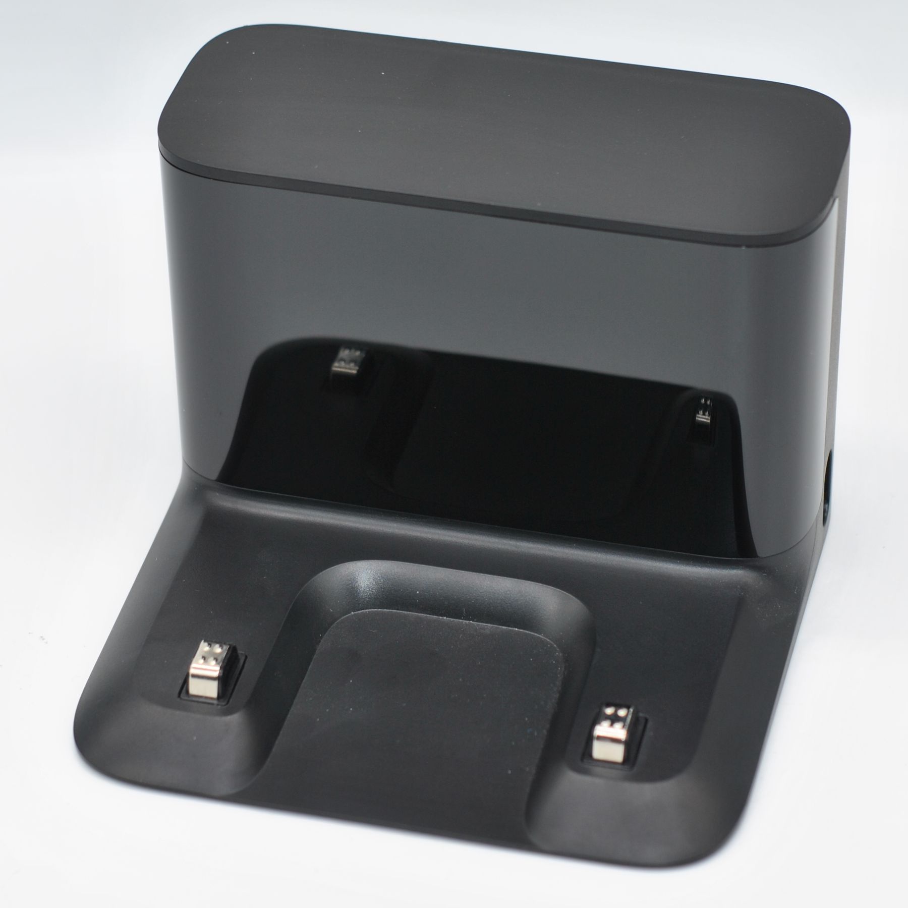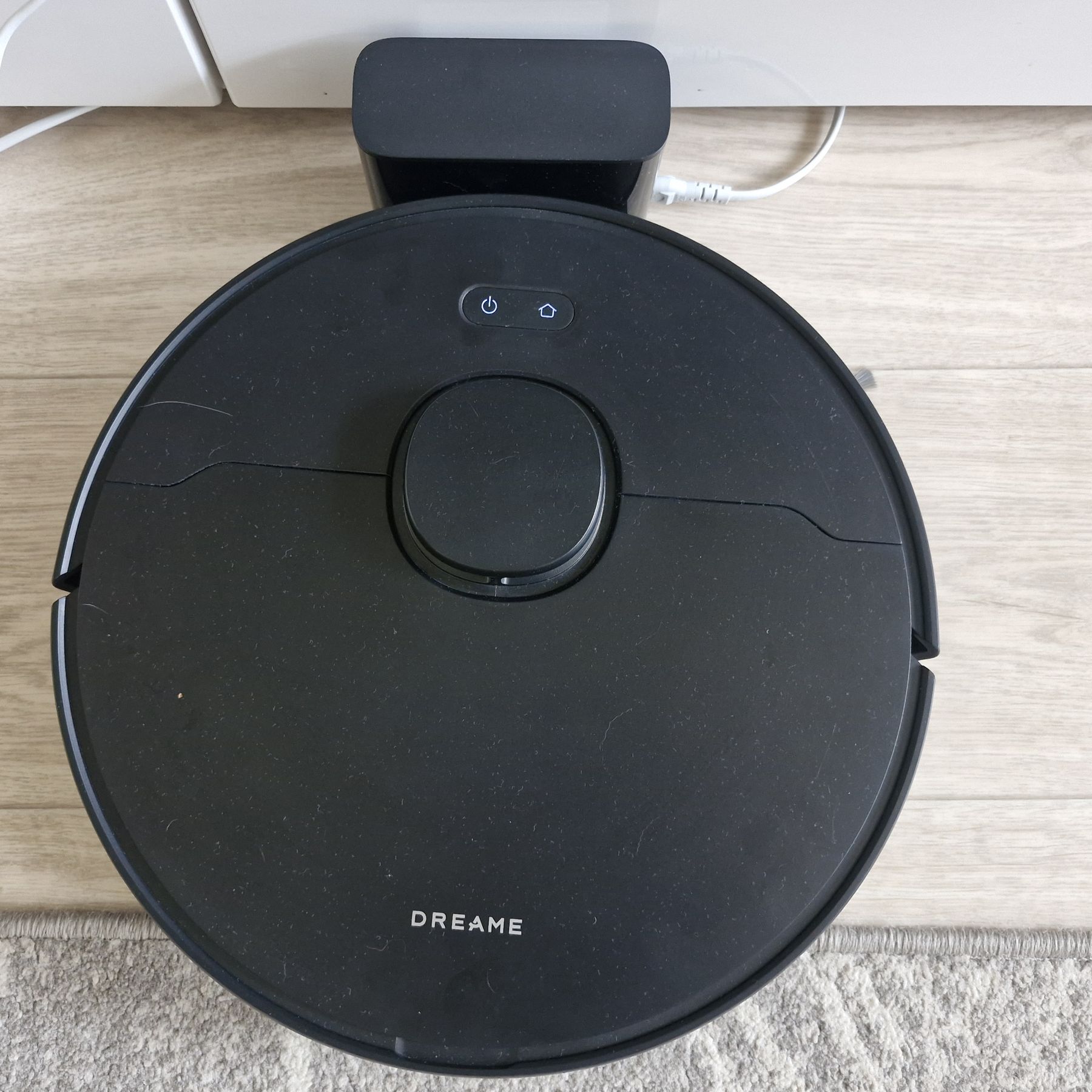 Кабель (он почему-то белого цвета) заводится сбоку, не скользит по полу благодаря силиконовым ножкам. При размещении нужно сделать свободный широкий подъезд роботу — пылесосу.