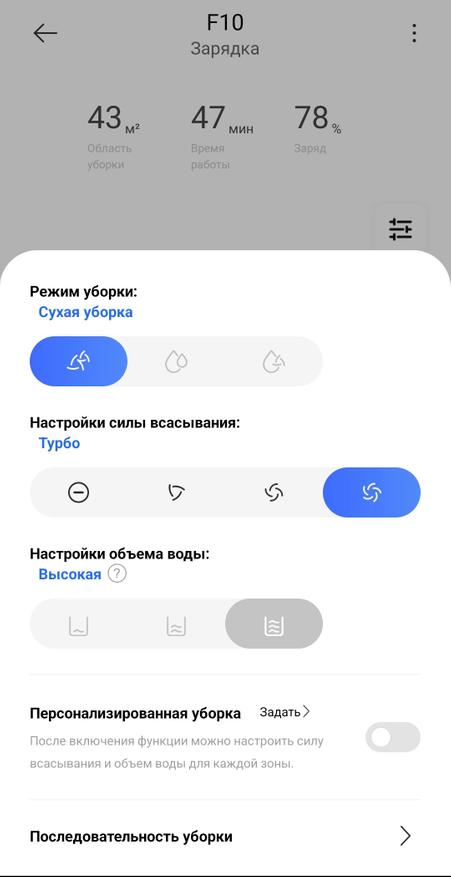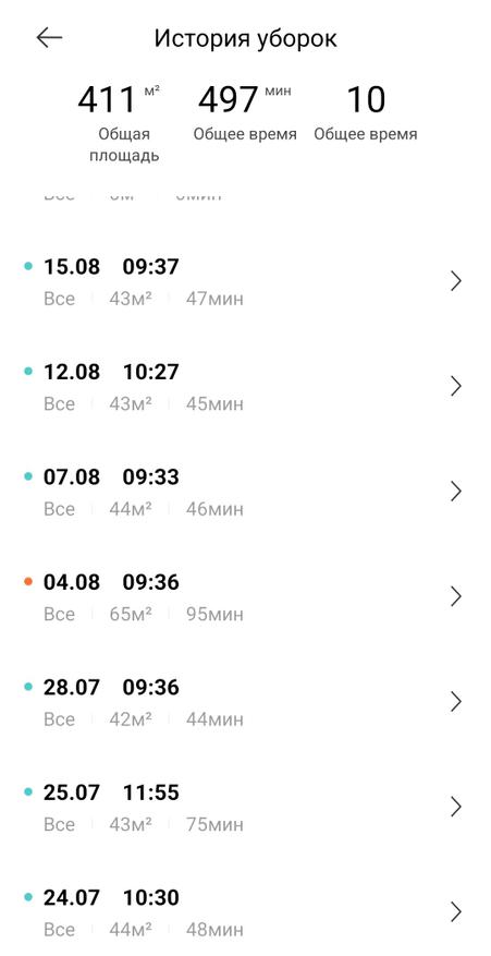 Тут используется фирменное ПО Dreamehome (перевод на русский на 95% качественный, нужна регистрация), регулярно прилетают обновления на пылесос. В приложение можно настроить пылесос, удаленно запускать уборку, настраивать расписание, корректировать карту (последовательность, зонирование, этажи) и следить за историей всех действий.