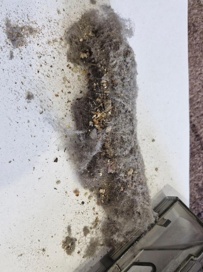 Порадовала и высокая сила всасывания (технология Vormax), вроде бы вчера только робот прошел всю квартиру и опять полный контейнер шерсти (привет от кота с первого фото) и мелкой пыли. Крупные крошки тоже собирает (на кухне с детьми без них никак).
