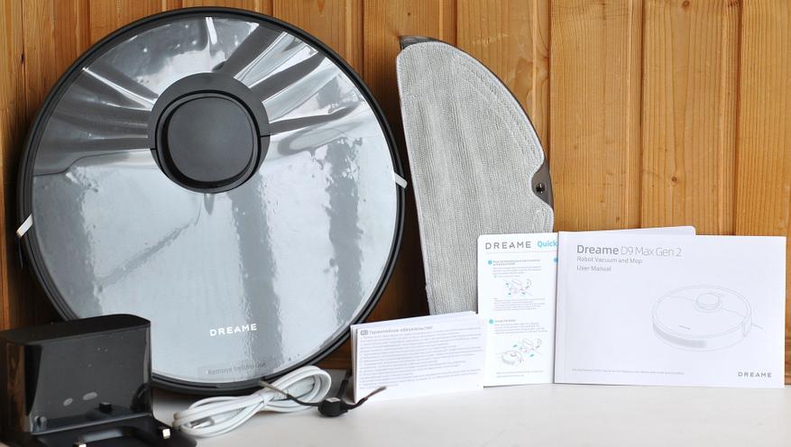 Помимо пылесоса Dreame F10 и зарядной док — станции с 1,5 метровым сетевым кабелем, в комплект входит моющая вставка с салфеткой и документация (руководство на русском, быстрый старт и гарантийный талон). Пластик корпуса без запаха.