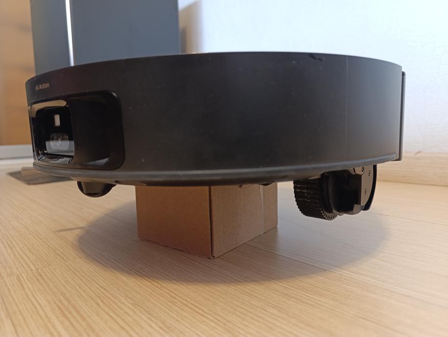 Классическая круглая шайба черного цвета, с выдвигающейся башенкой-лидаром, знакомой по моделям семейства X50. При опущенном лидаре высота корпуса составляет менее 9 сантиметров, в таком состоянии робот-пылесос убирается под низкой мебелью.