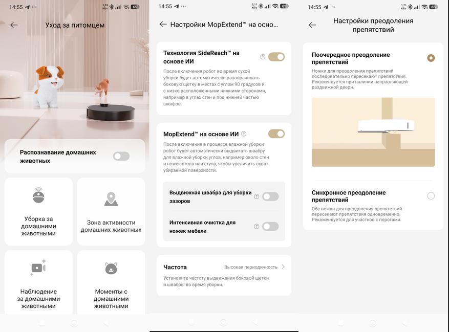 - Настройка функции смены швабр запрятано глубоко в приложение.