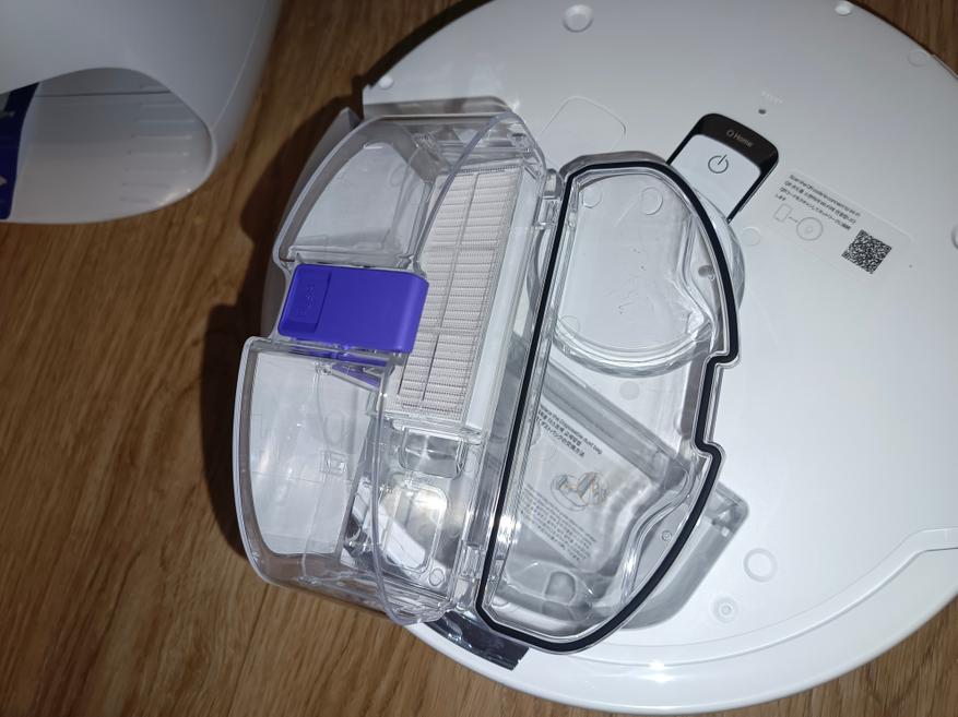 Для примера, аккумулятор был заряжен на 100 процентов, спустя 25 минут сухой уборки на максимальной мощности осталось 85%. Следом включалась влажная уборка, и осталось 72% заряда, и это на площади 20 квадратов. Общее время уборки составило 1 час 5 минут. Тряпка мылась два раза, где на этот процесс уходит около 2 минут. Автономность очень хорошая, и одного заряда вам смело хватит убрать двух-трехкомнатную квартиру.