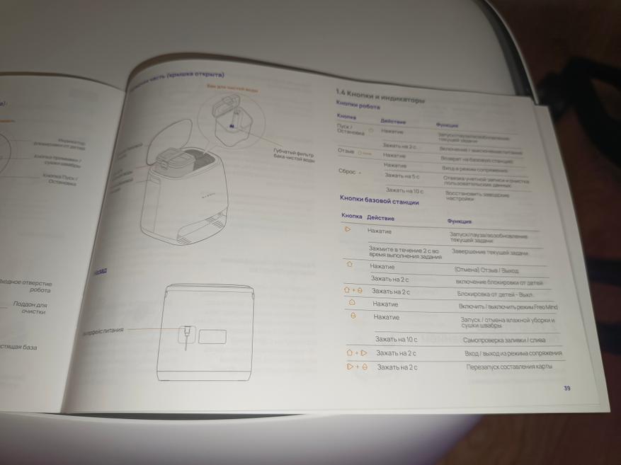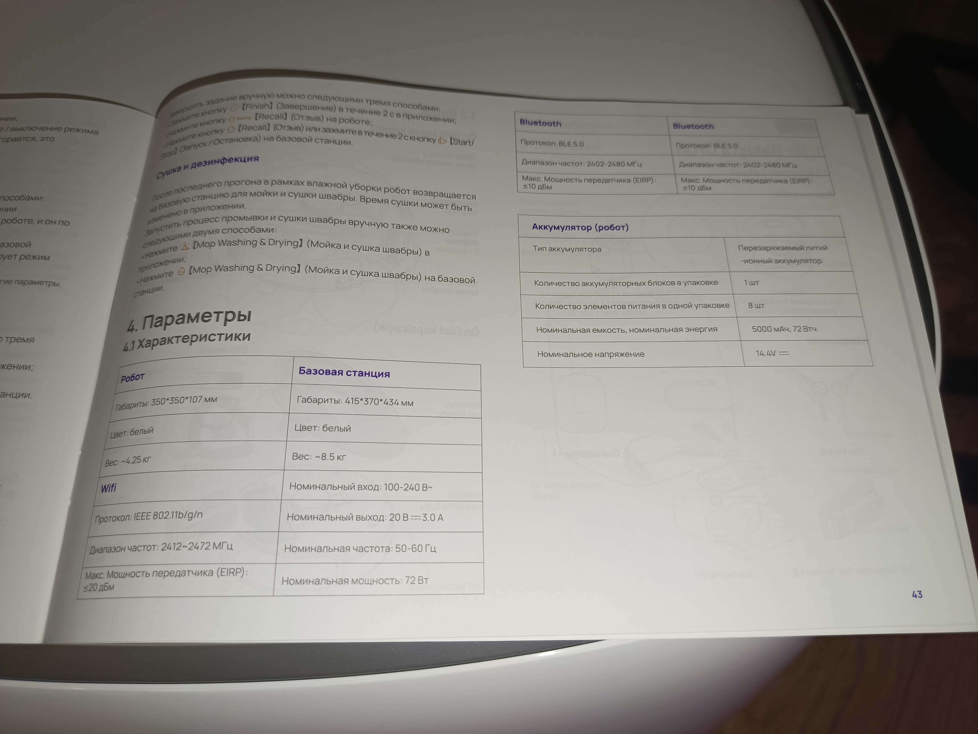 Станция расходует 44 Вт при зарядке и всего 1 Вт в режиме ожидания. Во время зарядки и сушки мопов энергопотребление увеличивается до 65 Вт.