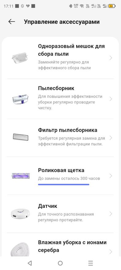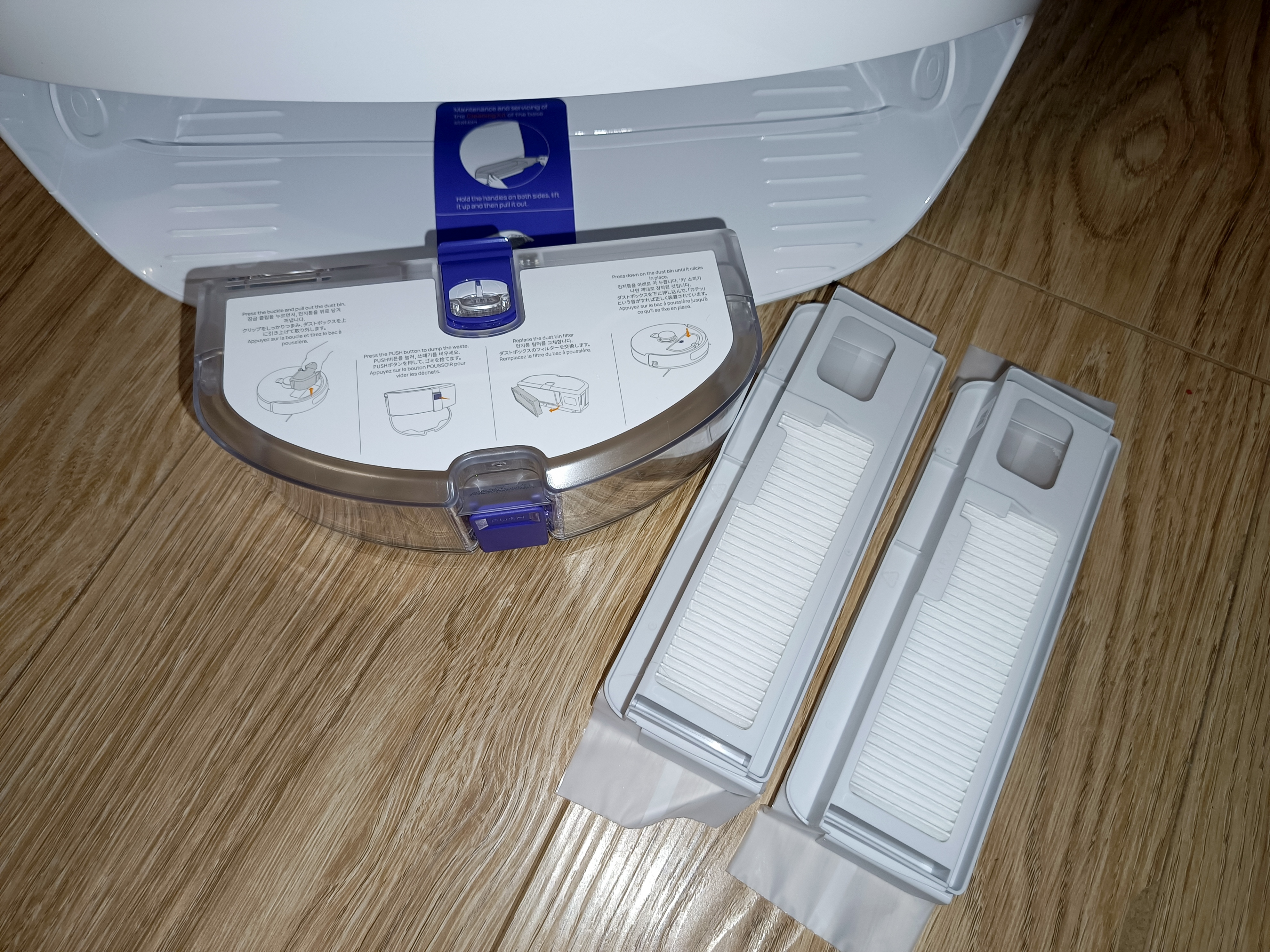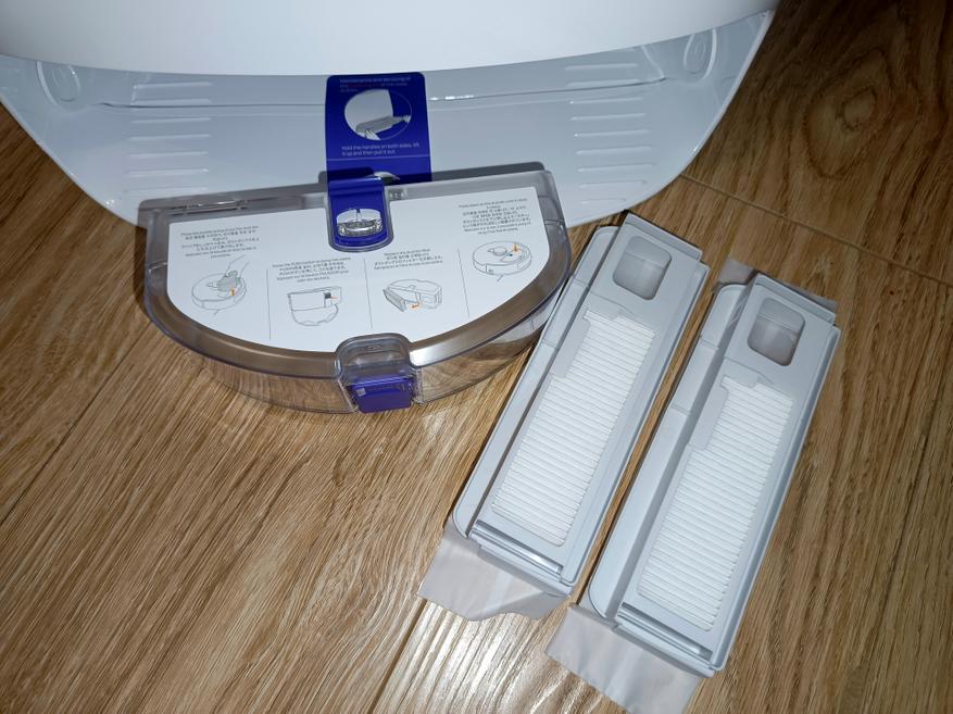 В комплекте идет три мешка с фильтрами для одноразового использования. Со слов производителя, его хватит до 7 недель использования. Здесь надо понимать, от загрязненности в доме и как регулярно вы будете производить уборку. Но все же 7 недель не подходить к пылесосу — это безупречно плюс. Если не хотите возиться с одноразовыми мешками, то можно сразу установить контейнер из пластика со сменным пылевым фильтром, который надо будет обслуживать. Забегу вперед и скажу, что в приложении есть полная рекомендация по обслуживанию всех элементов пылесоса, а также как это делать и через сколько часов.