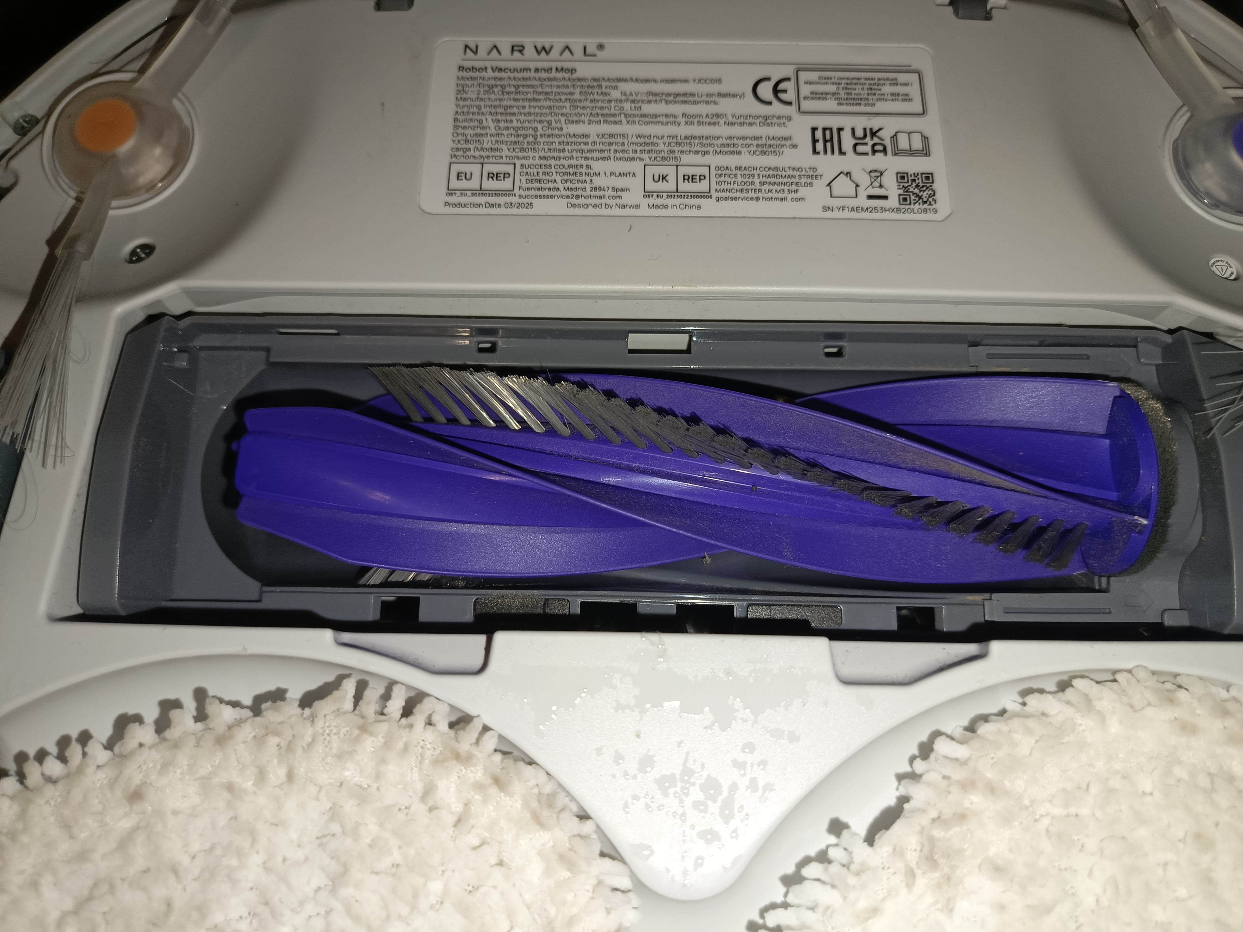 Снизу установлено два мопа для мытья полов, две двойные щетки и одна турбощетка с инновационной технологией Zero-Tangling. Эта технология предотвращает наматывание волос, шерсти, ниток.