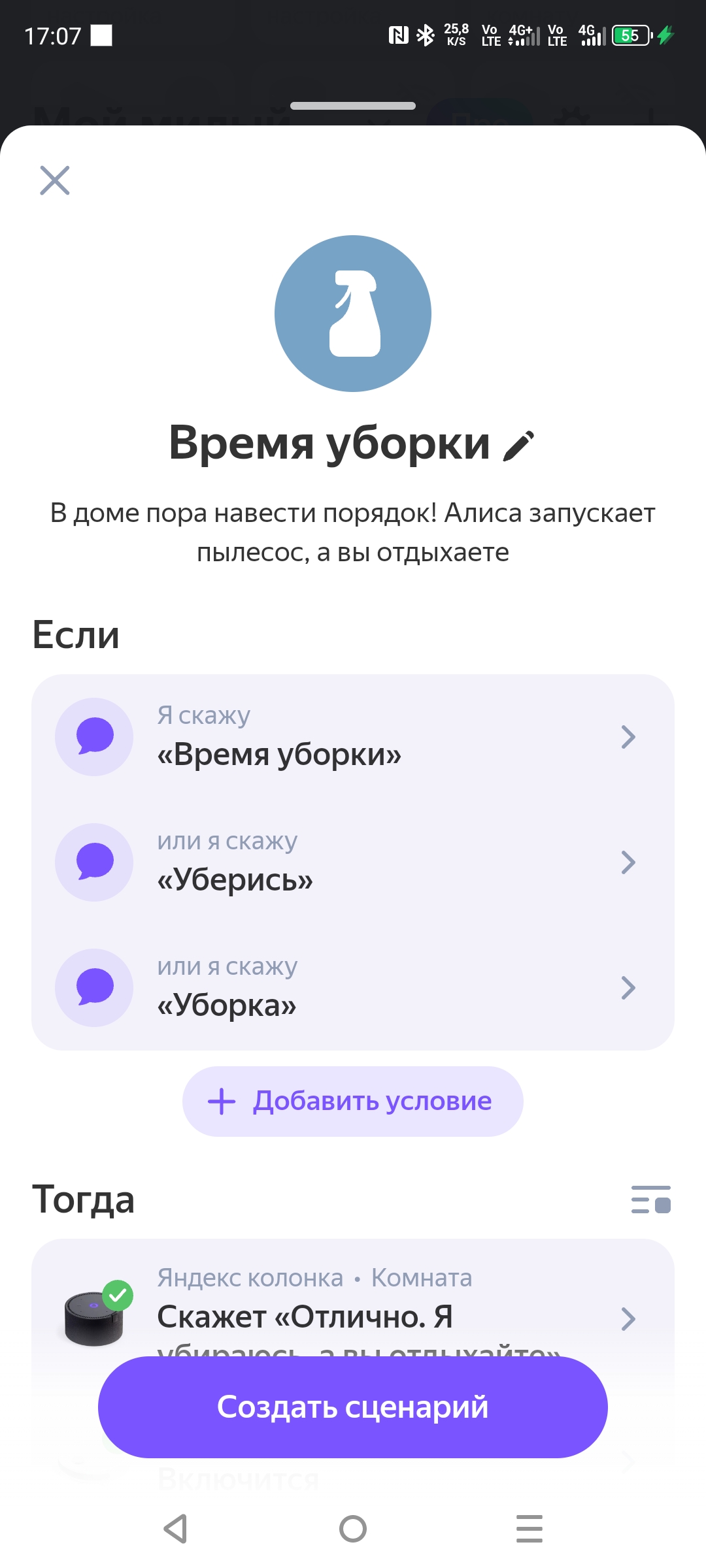 После добавления вы сможете запускать уборку голосом, строить сценарии уборки, следить за состоянием заряда аккумулятора.